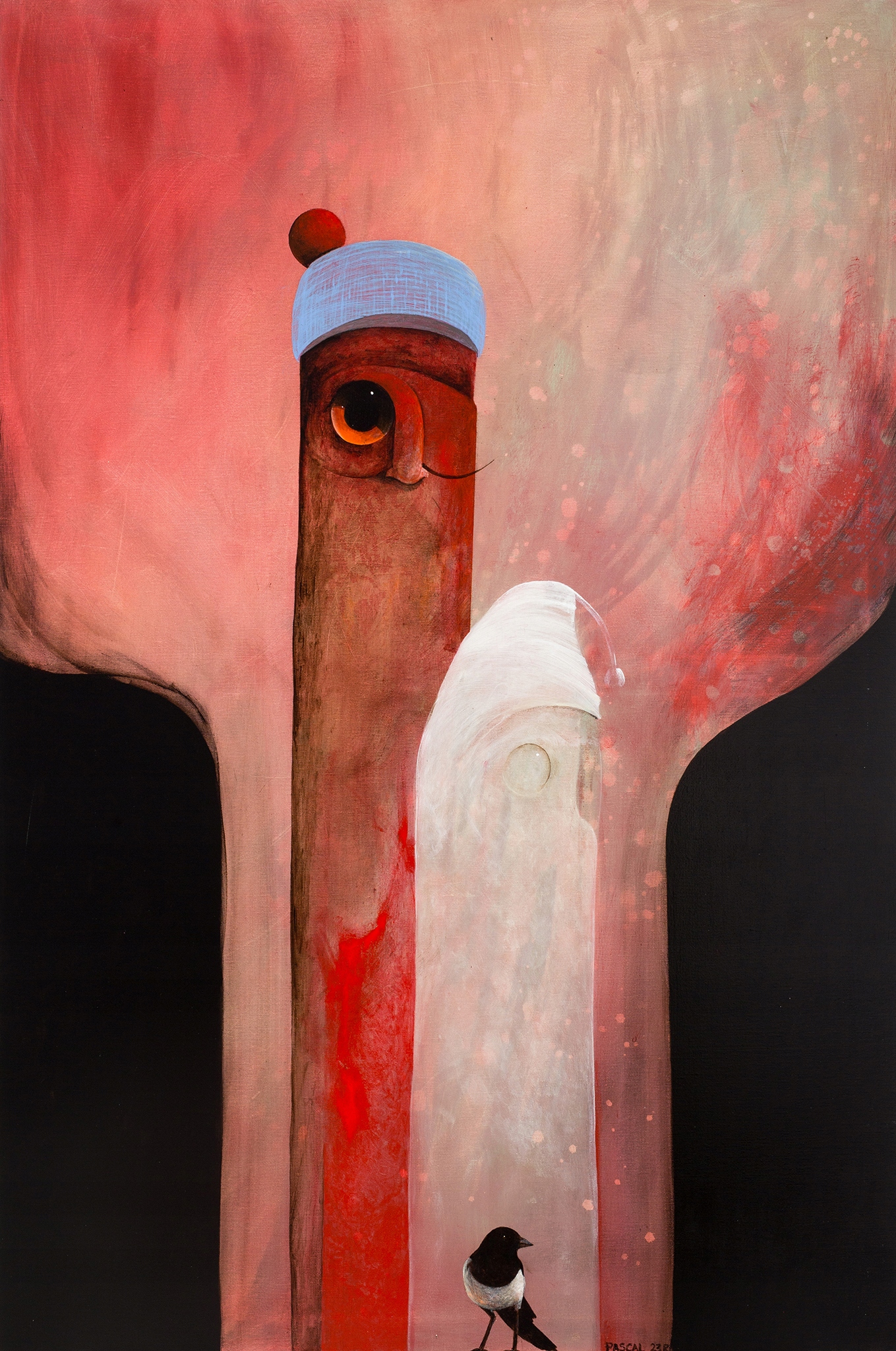 Аутентичная работа современного художника Войцеха Паскаля Зиткевича, представляющая сюрреалистическое видение. В вертикальной композиции художник изобразил две стройные фигуры, последняя из которых имеет характерные усы, идентичные знаменитым усам Сальвадора Дали. Во всем преобладают насыщенные кроваво-красные и черные оттенки, вызывающие множество ассоциаций с миром, созданным Здиславом Бексиньским. Композицию дополняет фигура милой сороки, сидящей в центре нижней части композиции.