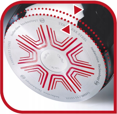 Толстое индукционное дно обеспечивает равномерное распределение тепла и высочайшую устойчивость дна к деформации.