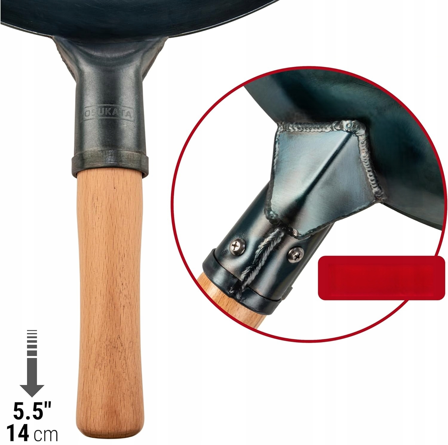 YOSUKATA Wok из углеродистой стали, 36 см — Традиционный китайский вок с приправами и круглым дном — Сковорода для перемешивания — Азиатская кухня — Большая сковорода для газовой плиты