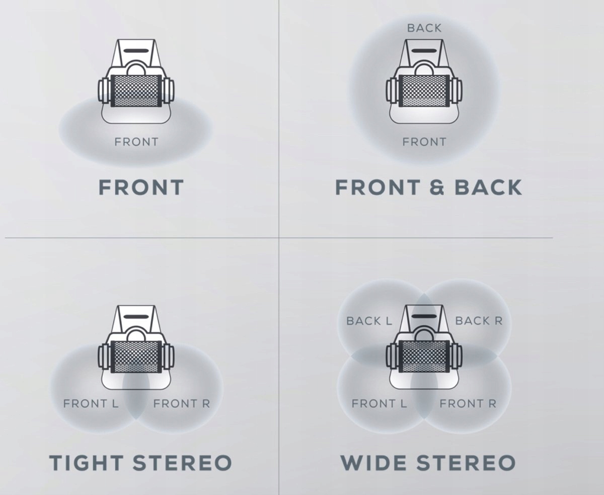 Функции: спереди, спереди-зад , Стерео спереди, Стерео спереди-зад