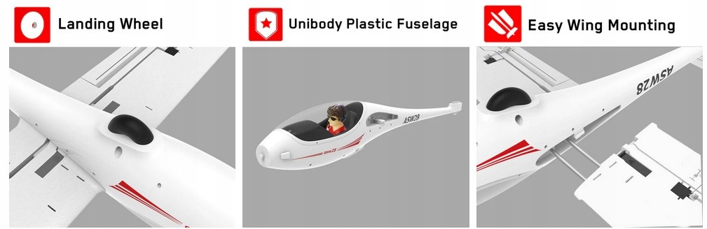 ASW28 V2 - это улучшенная версия своего предшественника, крылья были улучшены с дополнительной подругой, чтобы обеспечить дополнительную жесткость во время цикла и углов, их легче установить искусственные гарантии, что они останутся на месте. Кроме того, поверхность корпуса была увеличена, что означает, что вы можете легко установить систему FPV, если хотите. Также было добавлено колесо, которое облегчает посадку. Модель очень проста в сборке, и ее сборка не требует много времени.