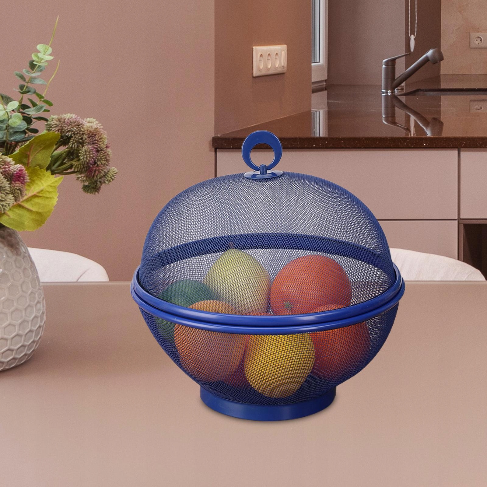 Корзина для волейбола для фруктов с металлической корзиной для крышки для кухонной стойки синего ресторана