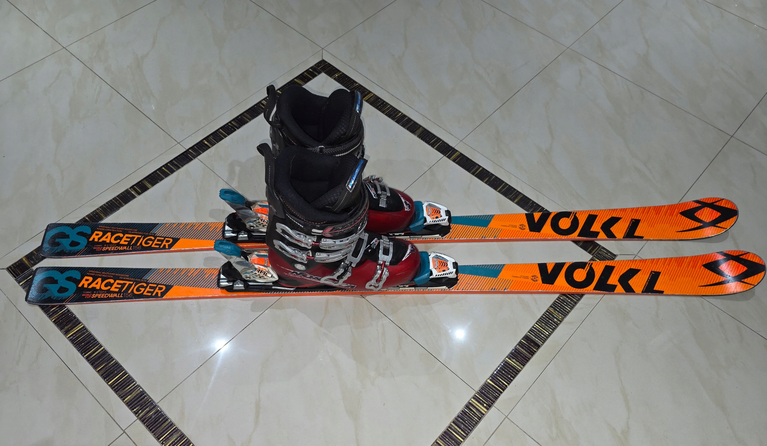 ЛЫЖИ И ОБУВЬ ИМЕЮТ НОРМАЛЬНЫЕ СЛЕДЫ ЭКСПЛУАТАЦИИ, ЦАРАПИНЫ, СТЕРИНЫ НА КОРПУСЕ ГРАФИЧЕСКИЙ ДИЗАЙН НА КРОМКИ ЛЫЖ, ВИДИМЫЕ НА ФОТО, В ОСНОВНОМ СДЕЛАНЫ ВО ВРЕМЯ ОЖИДАНИЯ В ОЧЕРЕДИ НА ПОДЪЕМНИК И ВСТАВКИ ЛЫЖ В СТОЙКИ, В Б/У СНАРЯЖЕНИИ ЭТОГО НЕ ИЗБЕЖАТЬ
