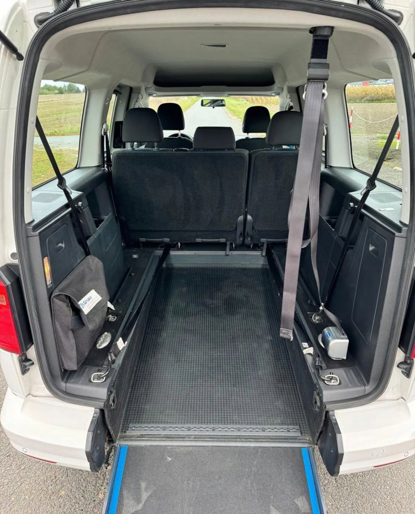 Автомобиль, приспособленный для перевозки инвалида на инвалидной коляске, с пандусом.