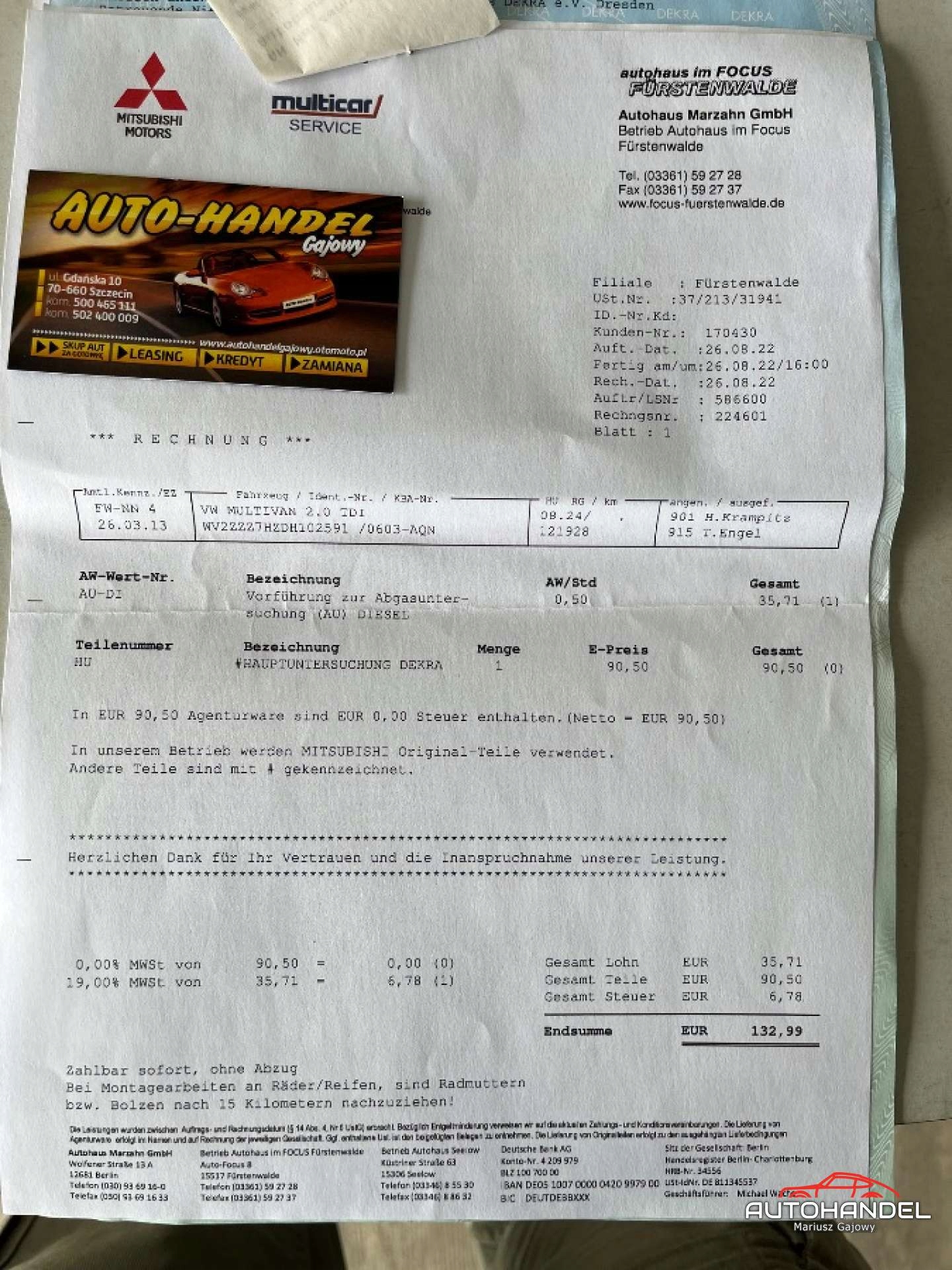 Просматривая «Volkswagen Multivan ABT 2,0 TDI 180PS, DSG, низкий пробег, максимум», вы можете быть уверены, что данный товар из каталога «Мультиван» будет доставлен из Польши и проверен на целостность. В цене товара, указанной на сайте, учтена доставка из Польши. Внимание!!! Товары для Евросоюза, согласно законодательству стран Евросоюза, могут отличаться упаковкой или наполнением.