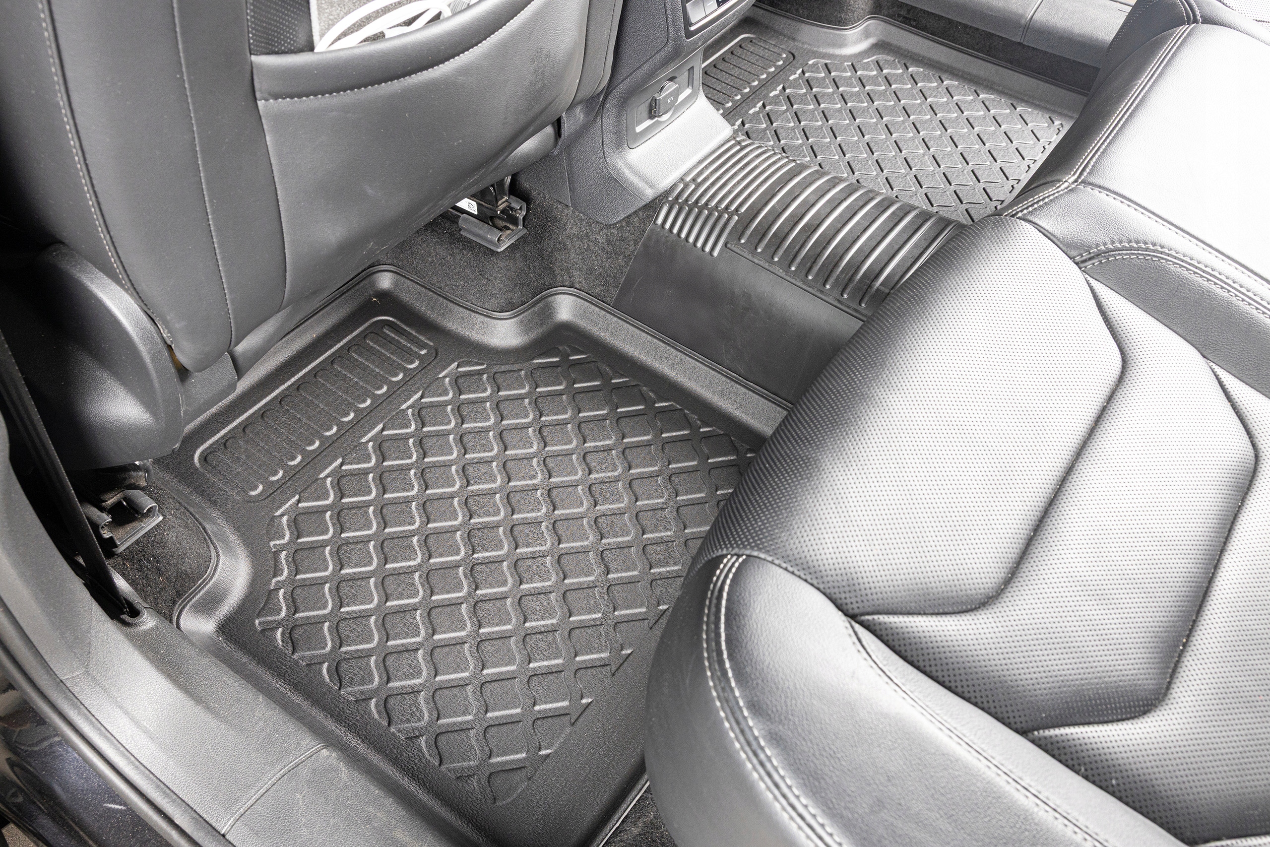 Предлагаемые коврики точно разработаны по форме напольной плиты с учетом не только марки/модели автомобиля, но также года выпуска и версии кузова, поэтому они идеально подходят. Коврики изготовлены из высококачественного, прочного и армированного пластика, не содержащего вредных для здоровья веществ, что обеспечивает безопасное использование. Высокий воротник (кромка), защищающий вокруг ковриков и обеспечивающий стабильность формы, эффективно задерживает воду и грязь, защищая оригинальную обивку автомобиля от загрязнений. Безопасно в использовании благодаря практичной и простой в использовании системе крепления к полу автомобиля. Система крепления адаптирована к марке/модели автомобиля и защищает коврик от смещения во время движения. Матовая поверхность и изысканный рисунок на поверхности обеспечивают эстетичный внешний вид автомобильных ковриков.
