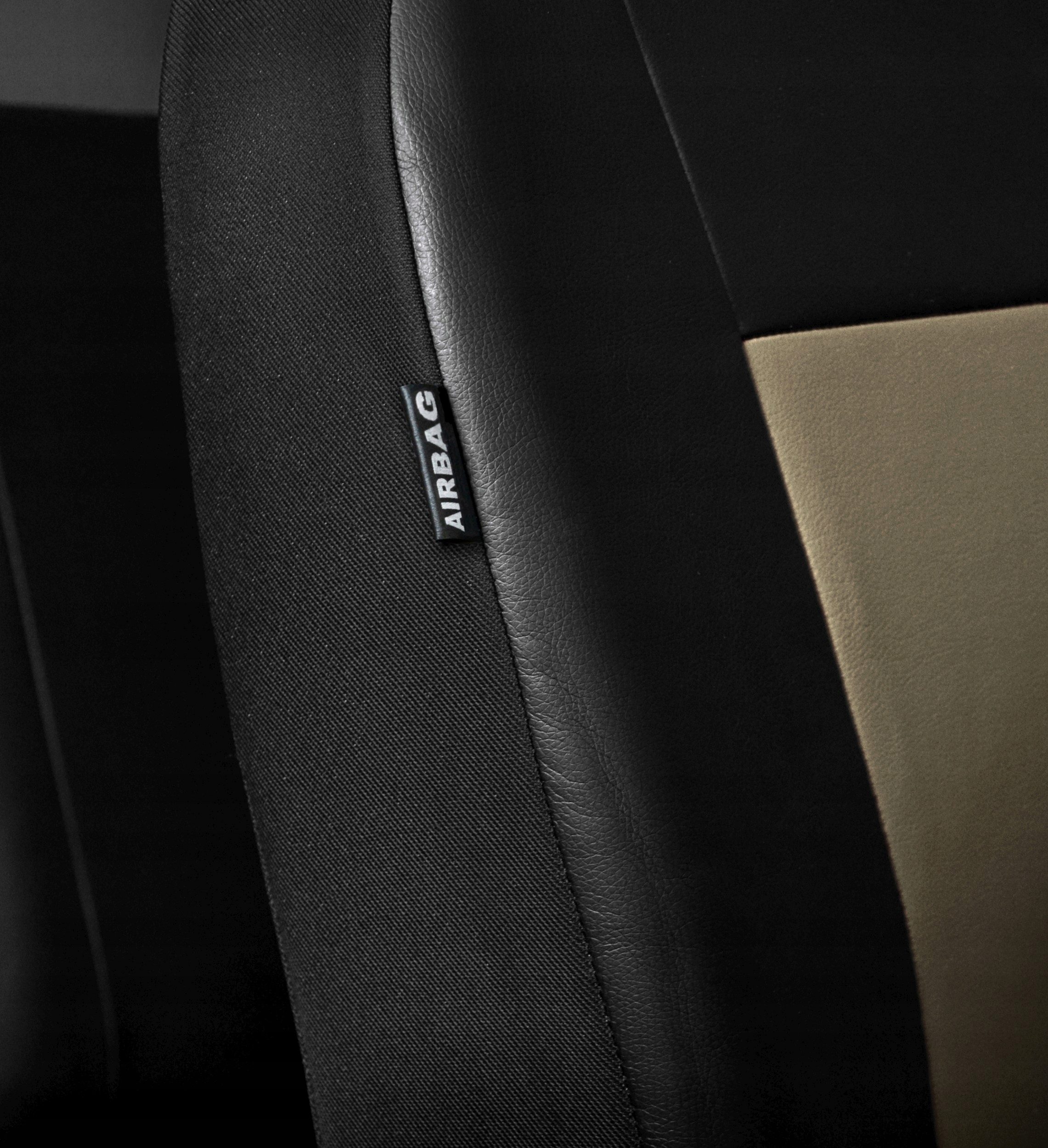 Стандартные обложки имеют сертифицированный пласт для подушки безопасности , благодаря которому они адаптированы к автомобилям с обеими боковыми подушками безопасности в креслах и для стандартных сидений. Благодаря использованию специального шва, они полностью покрывают места, не мешая работе подушек безопасности.