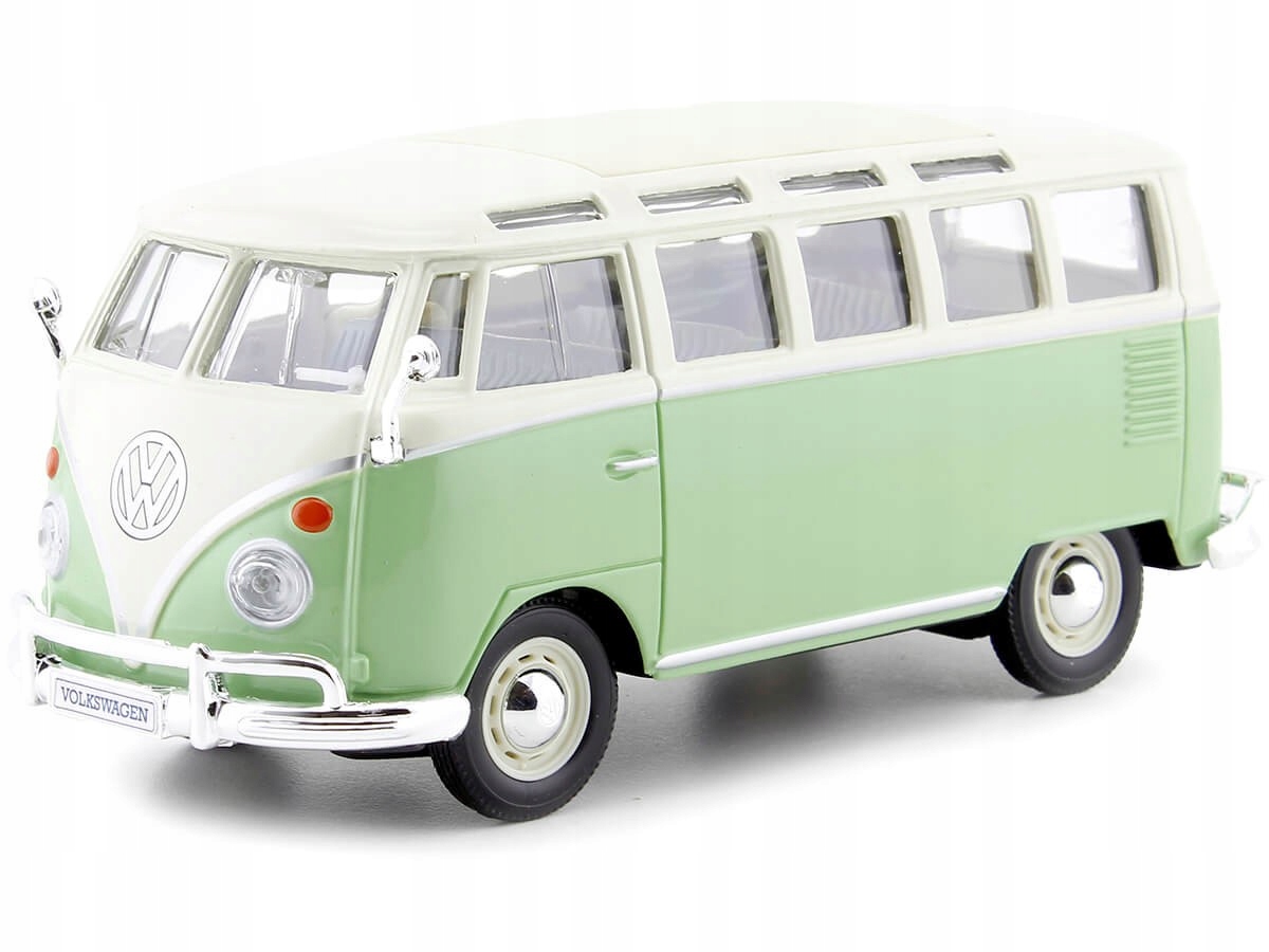 Коллекционная металлическая модель автобуса Volkswagen VW T1 Van Samba 1961 года выпуска в масштабе 1:25 от Maisto. Каталожный номер: 31956 / 31956Gr / 31956G