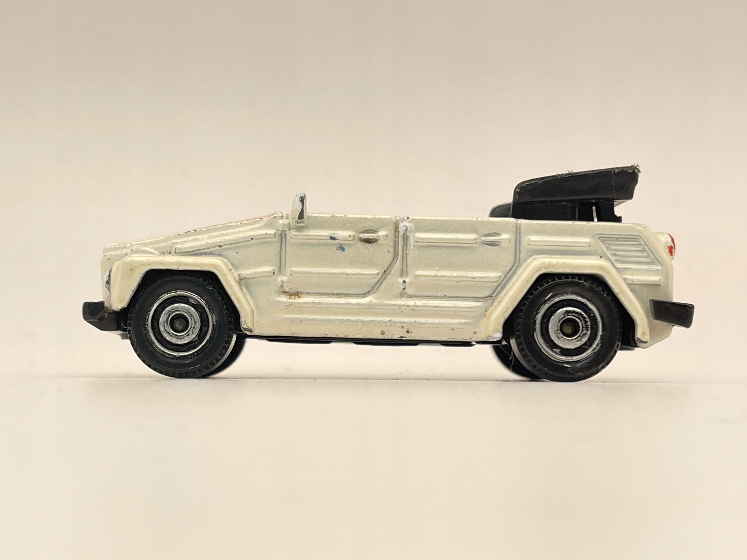 Рессорная подвеска Volkswagen Type 181 — 1974 года выпуска от Matchbox отличается открытой крышей и детализированным салоном, что делает ее привлекательной для коллекционеров.