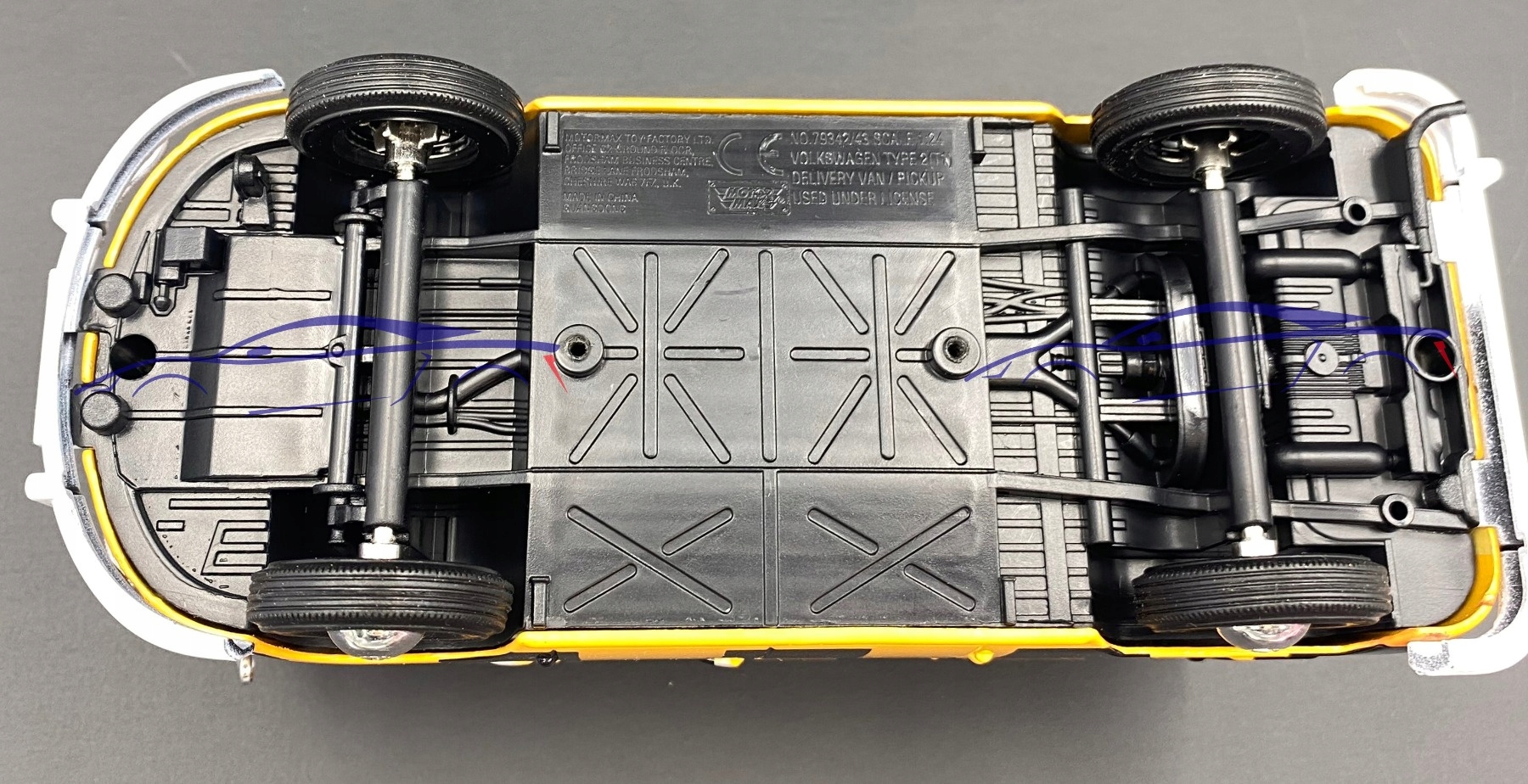 Модель автомобиля VW отличается вниманием к деталям. Имеет подвижные элементы - двери, крышку двигателя, колеса.