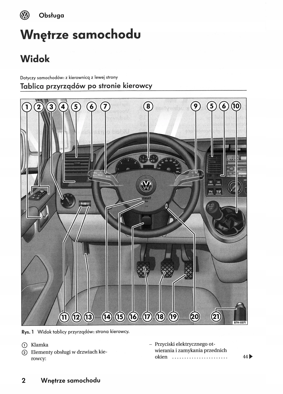 Руководство по эксплуатации VolkswagenMultivan, Caravelle, Transporterсодержит все варианты оснащения и полезную информацию о том, как эффективно и безопасно использовать автомобиль, например: - индикаторы, контрольные лампы, открытие и закрытие - освещение и обзорность, сиденья, отсеки для хранения вещей, отопление, вентиляция, кондиционирование - вождение, советы по эксплуатации, обслуживание автомобиля - уровни жидкостей, проверка и заправка, аварийные операции, замена колес, предохранители, замена лампочек - технические данные... и многое другое, дающее путешественникам ощущение безопасности и комфорта. Польское законодательство обязывает продавца приложить к автомобилю руководство по эксплуатации на польском языке. Руководство пользователя автомобиля новое, на польском языке.
