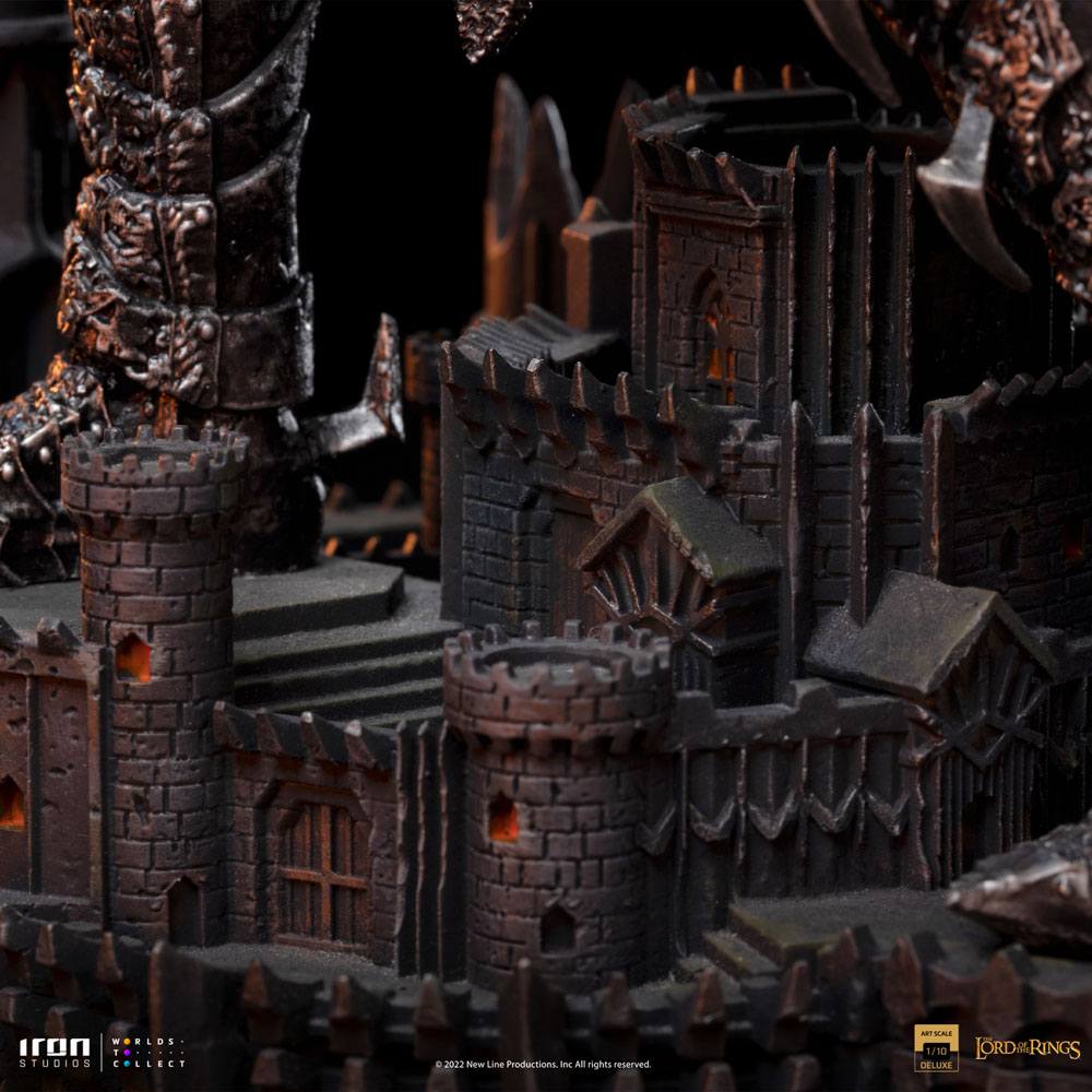 Он выполнен в масштабе 1:10 и имеет высоту примерно 38 см (приблизительные общие размеры 38 x 24 x 29 см). Изготовлен из материала Polystone, а затем расписан вручную. Сама фигурка помещена на красивую подставку в виде крепости Барад-Дур, и вся вещь статична.