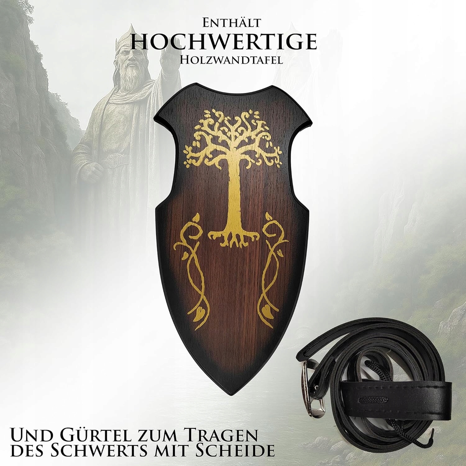 ЛУЧШИЙ КОРОЛЕВСКИЙ НАБОР: Возглавьте пламя Запада. Этот эксклюзивный комплект включает в себя не только острый меч Андурил ручной ковки и его замысловатые ножны, но также красивую деревянную настенную табличку для стильной демонстрации и прочный пояс, на котором вы можете носить меч, как Арагорн, на боку.
