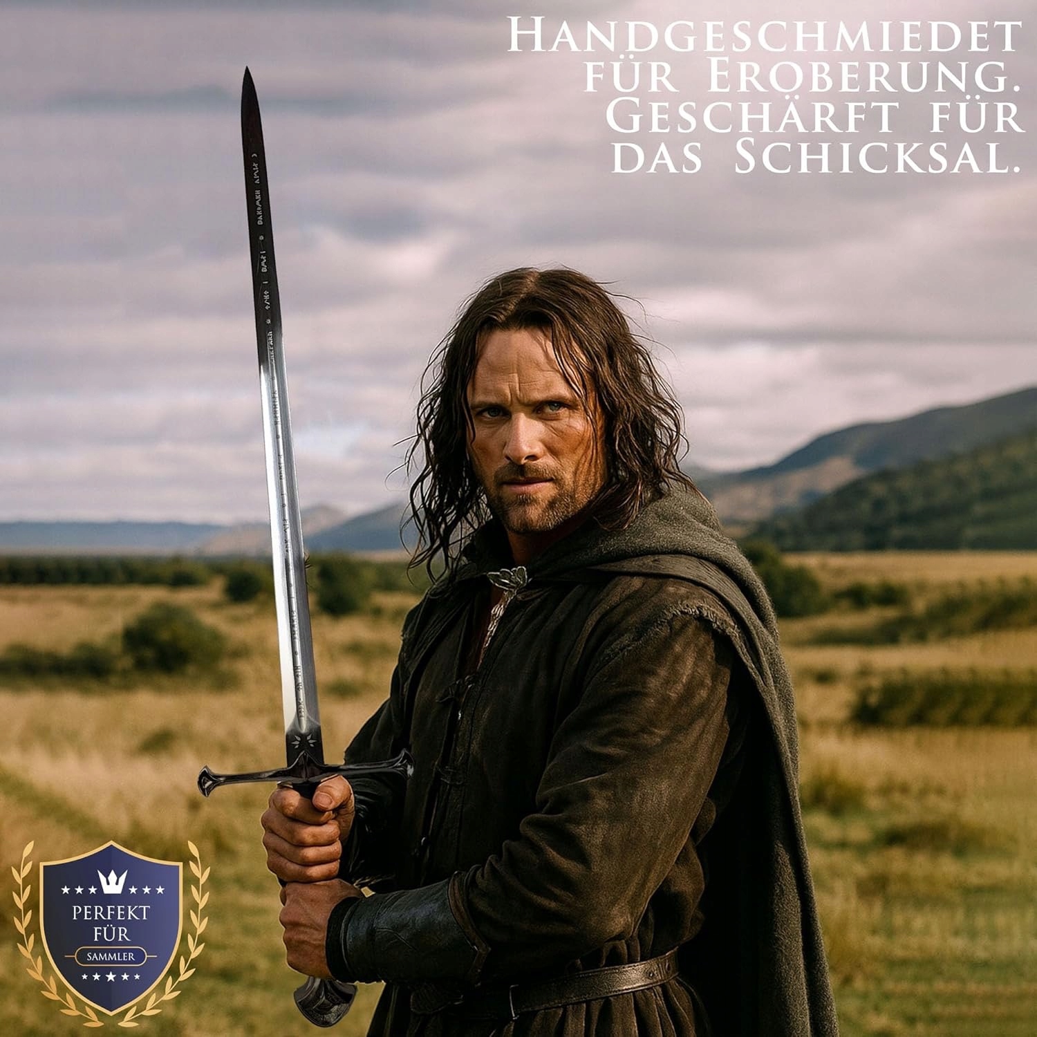 ПОдлинная копия ПЛАМЕНИ ЗАПАДА: Держите Андурил, легендарный королевский меч Арагорна. Эта подлинная копия меча, выкованная из фрагментов Нарсила, является незаменимой для любого настоящего поклонника «Властелина колец».