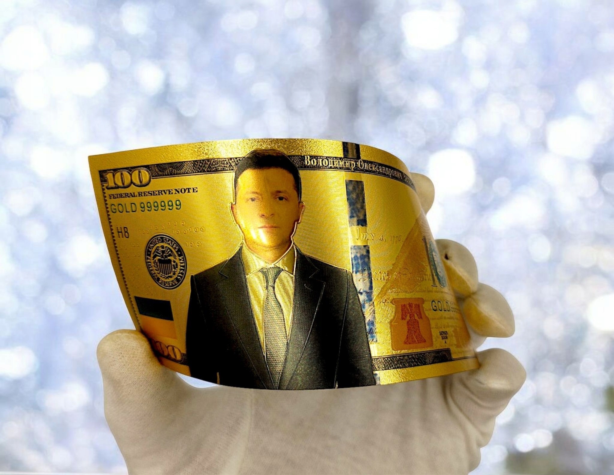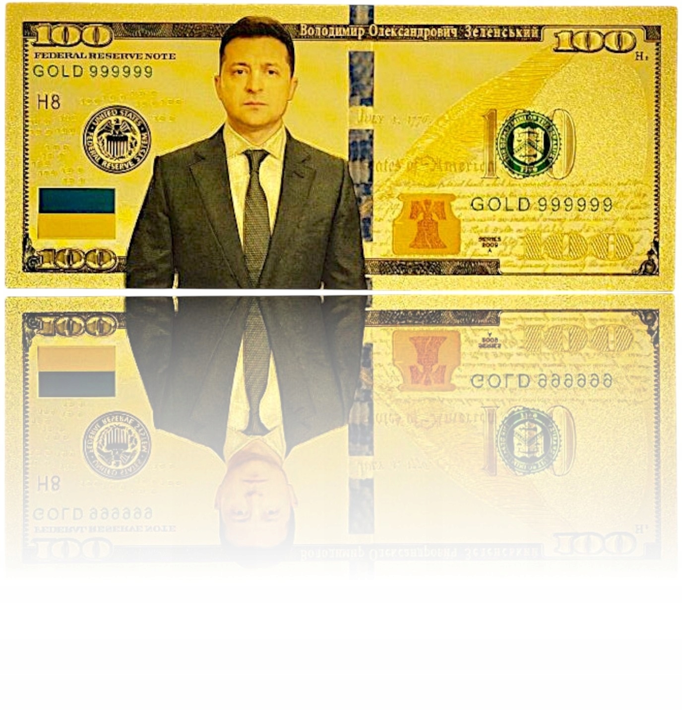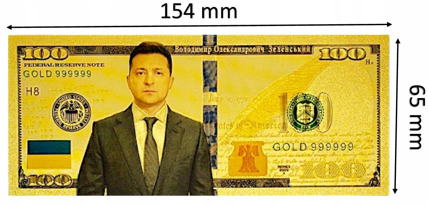 ВЛАДИМИР ЗЕЛЕНСКИЙ ПОЗОЛОЧЕННАЯ КОЛЛЕКЦИОННАЯ БАНКНОТА ПВХ 100 ДОЛЛАРОВ