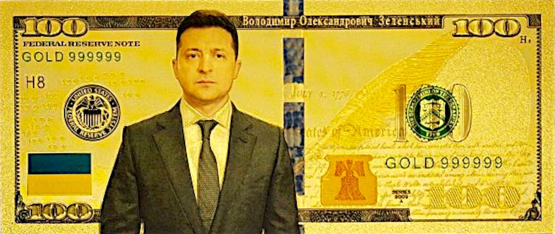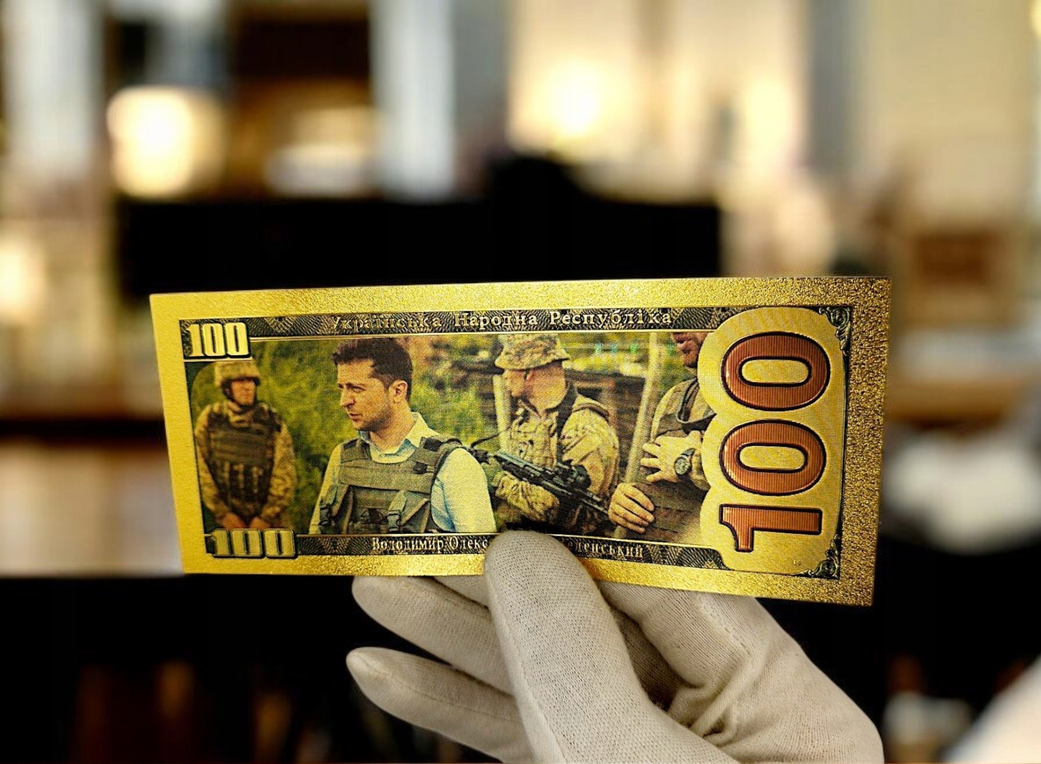 ВЛАДИМИР ЗЕЛЕНСКИЙ ПОЗОЛОЧЕННАЯ КОЛЛЕКЦИОННАЯ БАНКНОТА ПВХ 100 ДОЛЛАРОВ