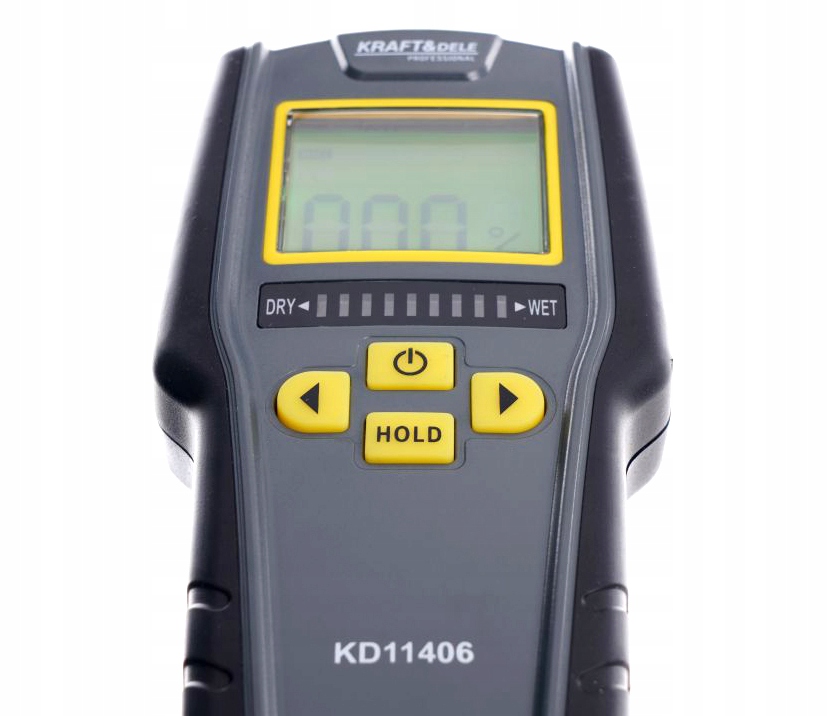 Влагомер Kraft&Dele Model KD11406 — профессиональное устройство, идеально подходящее для использования в деревообрабатывающей промышленности, испытания тканей и бумаги, а также хранения строительных материалов.