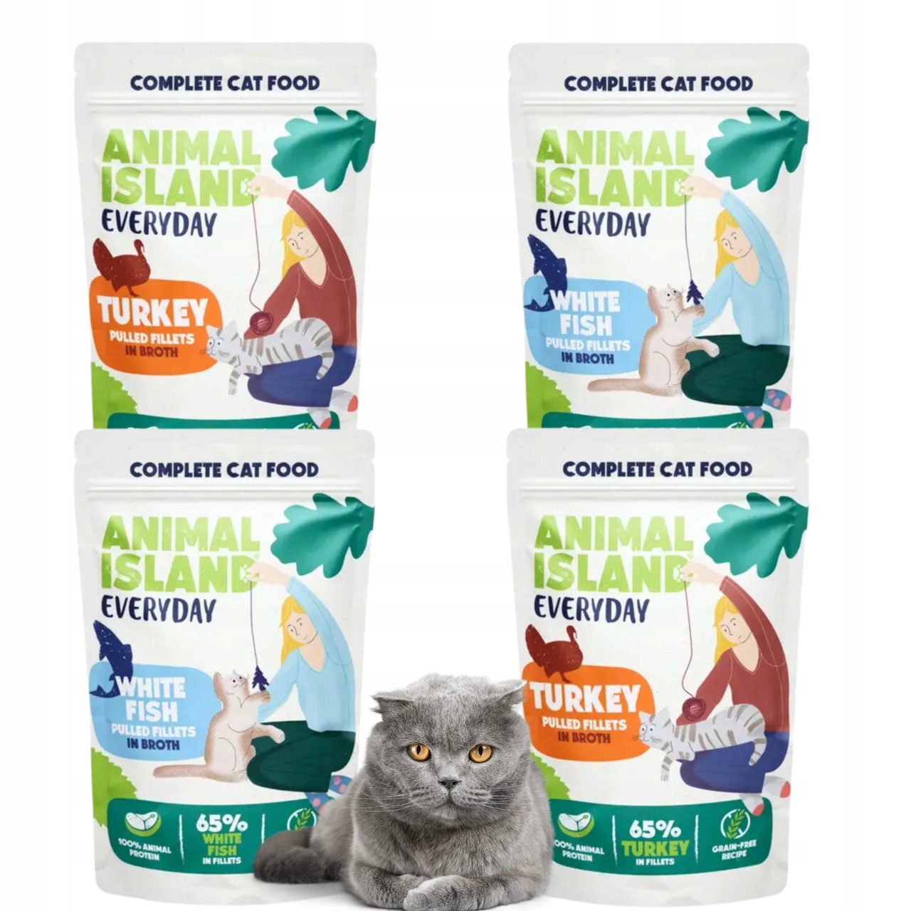 Дайте кошке очень аппетитный корм от Animal Island. Два уникальных вкуса - тушеная индейка и белая рыба, погруженные в нежный и бархатистый бульон, - отныне сделают наши пакетики его любимым лакомством.