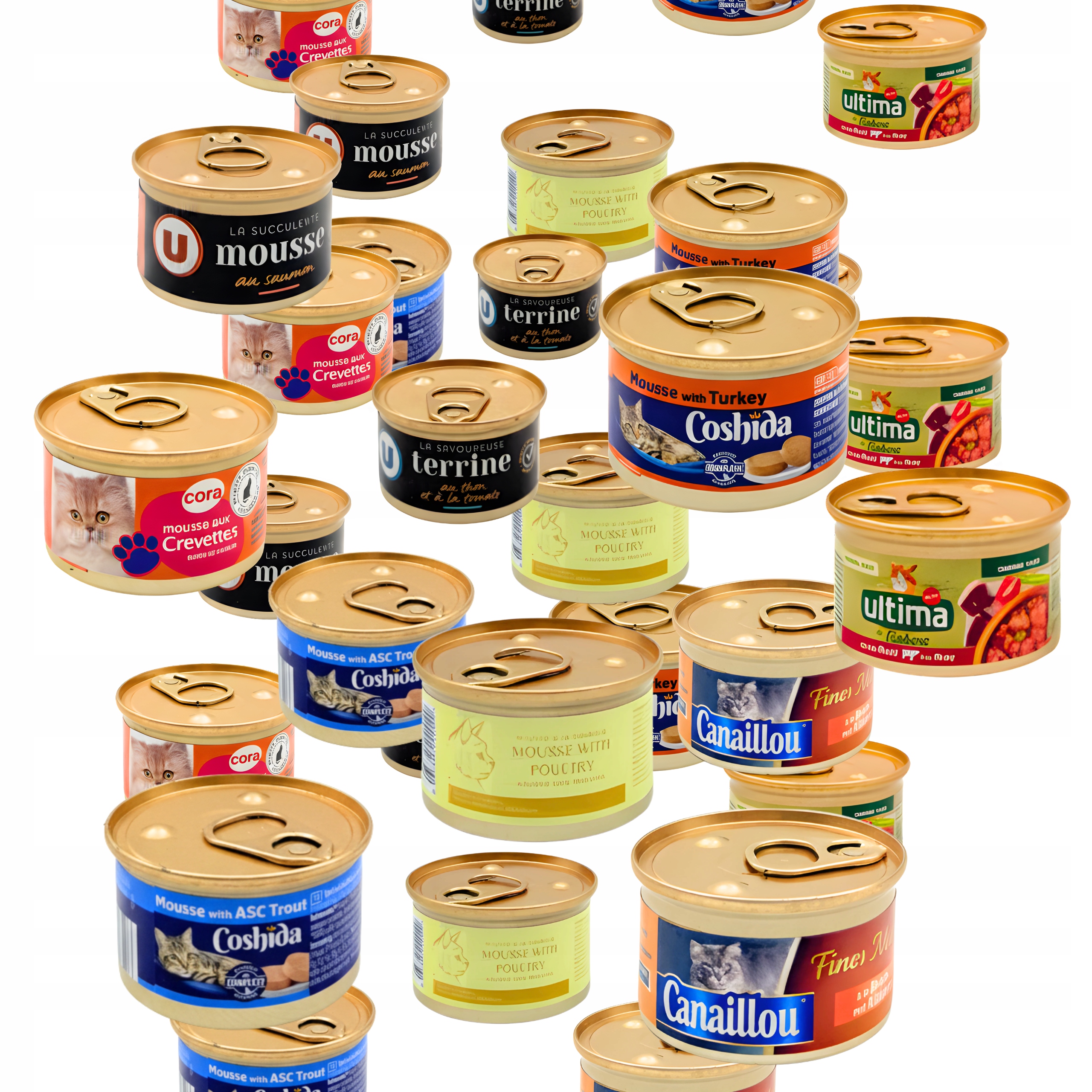 Влажный корм для кошек 90 шт. x банки по 85 г, кусочки смешанной упаковки и муссы