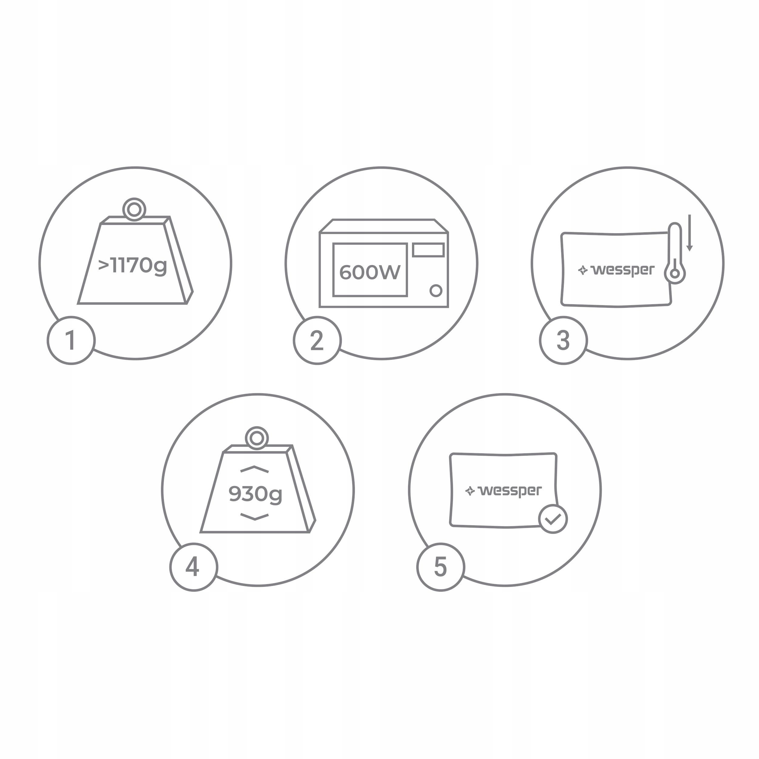 - Если общий вес прибора превышает 1170 г, поместите его в микроволновую печь максимум на 6 минут при мощности 600 Вт.