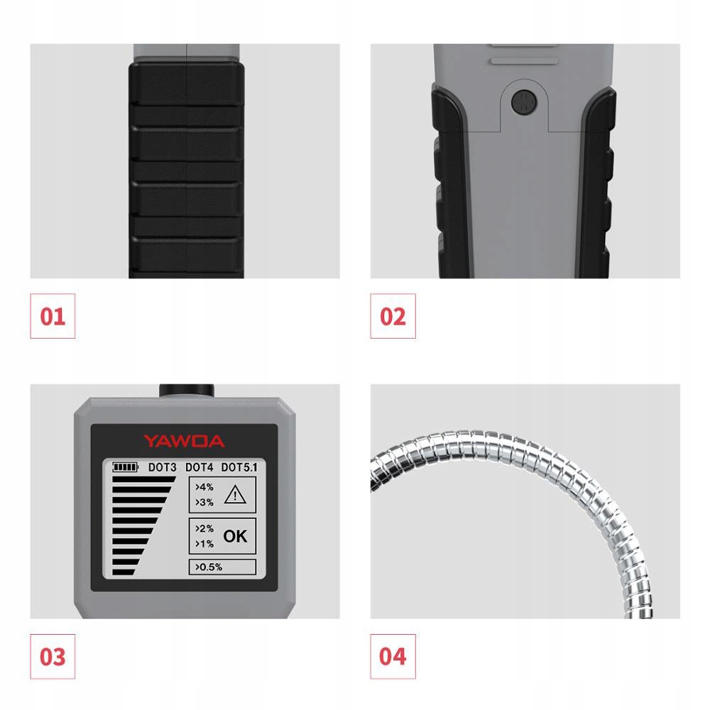 - Тестер тормозной жидкости использует высокочувствительный датчик для быстрого и точного определения уровня влаги. тормозной жидкости. Щуп можно изогнуть в любую сторону, поэтому он подходит для узких и труднодоступных мест.