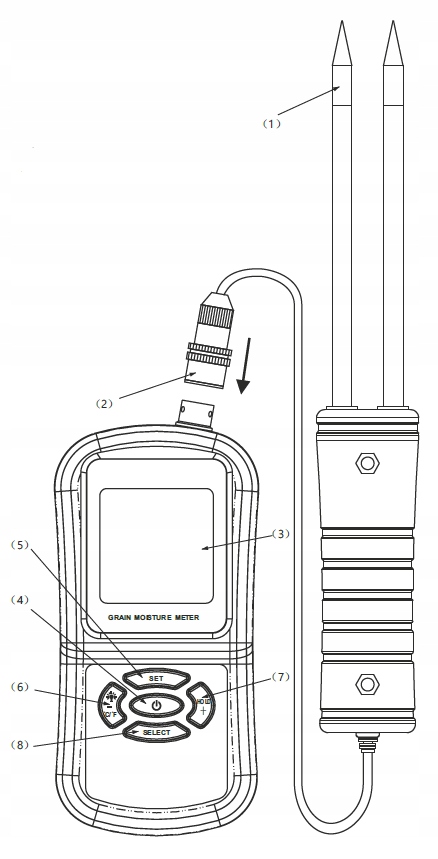 Измеренная влажностьот 5% до 30% и температура от -10 до 60°С. Каждой из восьми программ присвоен определенный тип зерна. Собранные данные используются закодированными датчиками для обеспечения наиболее реалистичного состояния тестируемого зерна. Устройство оснащено2-контактным датчиком с преобразователем LSI, который обеспечиваетбыстрое и точное считывание.