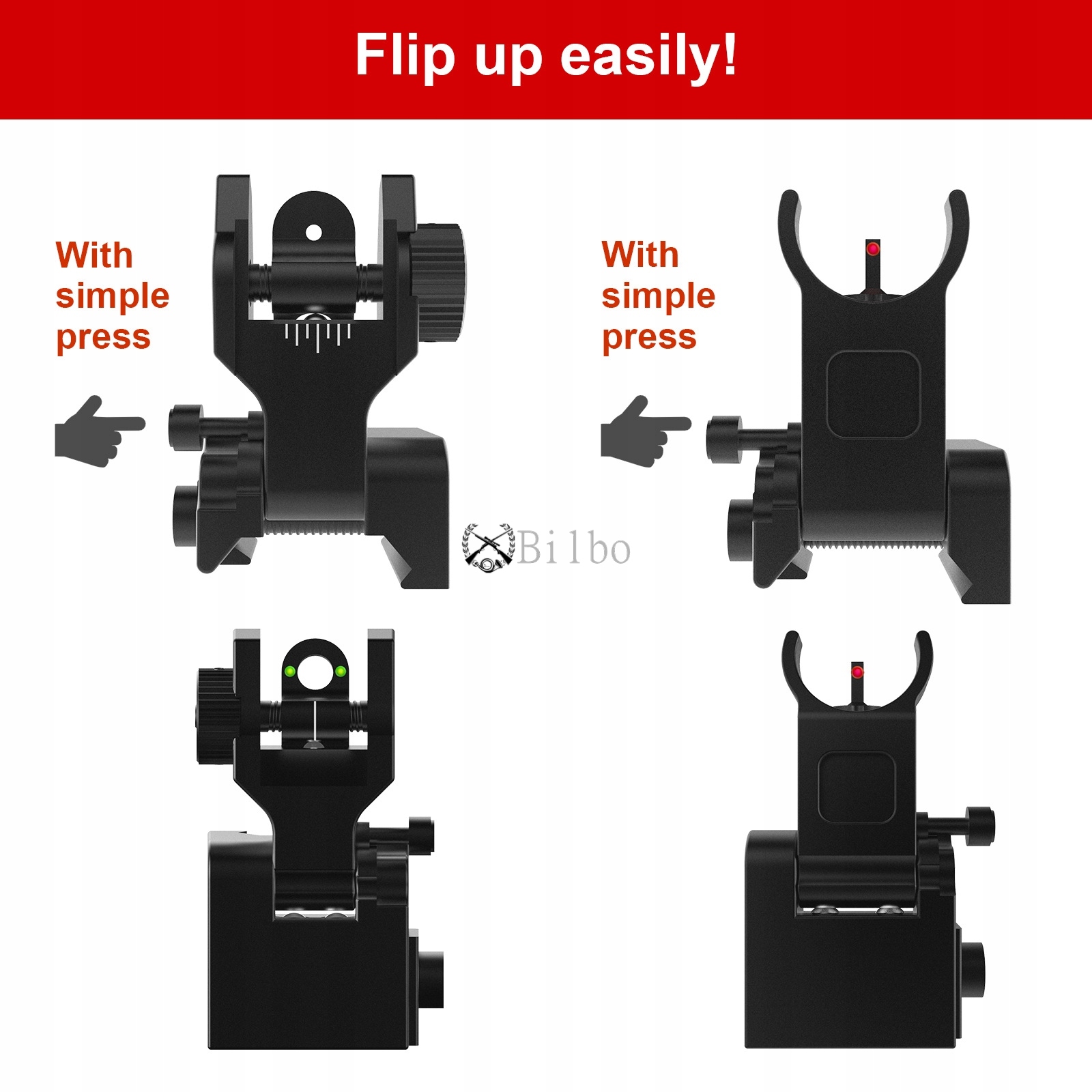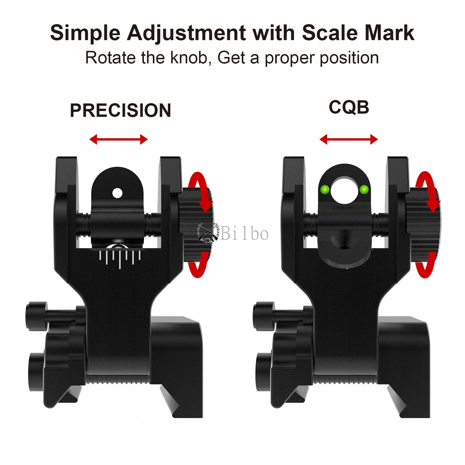 ● Надежный фиксирующий механизм на шарикоподшипниках, двойные отверстия и низкопрофильная складная конструкция для быстрого прицеливания.
