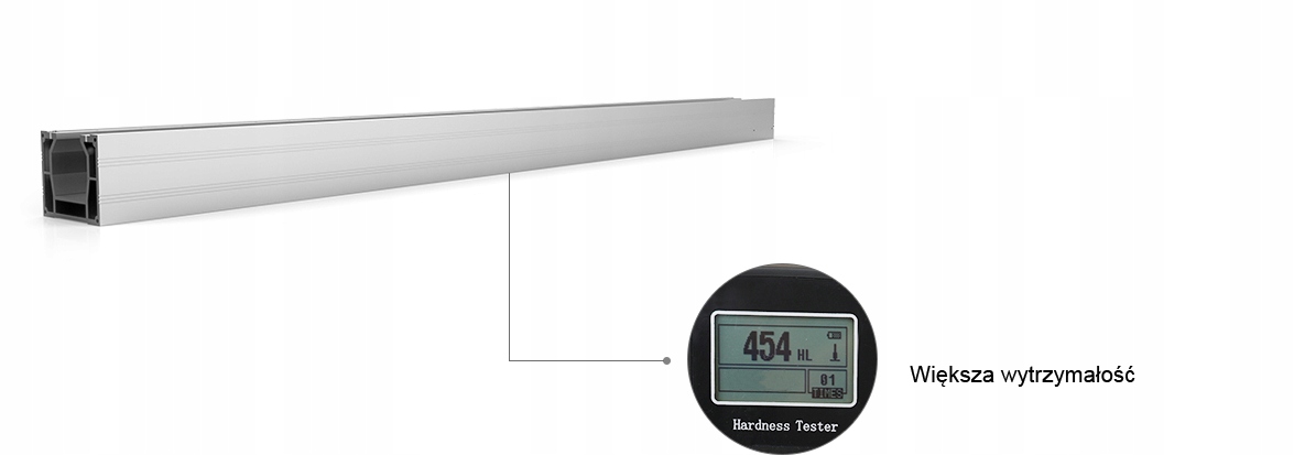 Конструкция раздвижных ворот изготовлена из выдержанного авиационного алюминия, сформирована с усилием 4300 тонн, что обеспечивает невероятную жесткость. Авиационный алюминий имеет множество преимуществ: высокую жесткость (больше, чем у чугуна), малый вес, стойкость к коррозии и окислению, хорошую обрабатываемость.