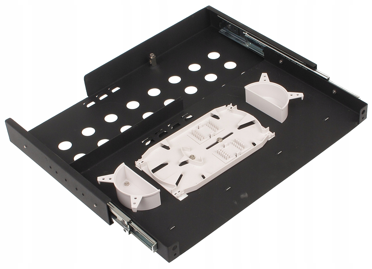 Оптоволоконная панель МТ-524 предназначена для использования в сетях FTTX в качестве точки распределения и точки подключения. В панели используются телескопические направляющие, обеспечивающие полное выдвижение полки, что упрощает ввод и установку кабелей и последующую эксплуатацию. Все это сделано из стального листа с черным порошковым покрытием. На оптоволоконной панели имеется место для крепления 24 сращиваний и изготовления запасного оптоволоконного кабеля. К панели добавлено 24 термоусадочных чехла.