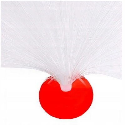 Светильник изготовлен из цоколя, доступного в 4 цветах: красном, синем, зеленом и розовом. , содержащий разноцветные светодиоды и пучок оптических волокон