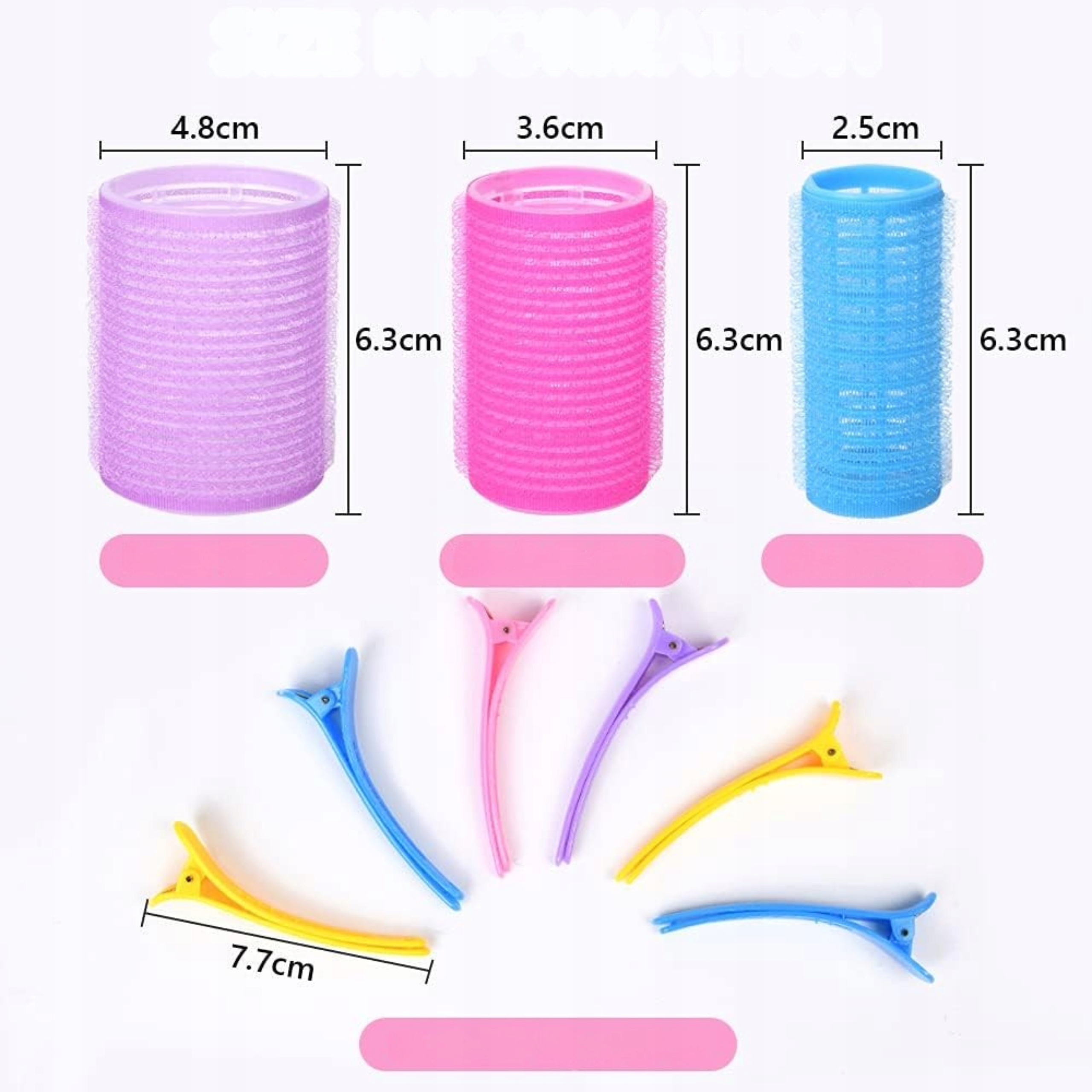 Вы получаете до 36 роликов в трех размерах и 12 практических клипов. Это все, что вам нужно для создания множества причесок дома.