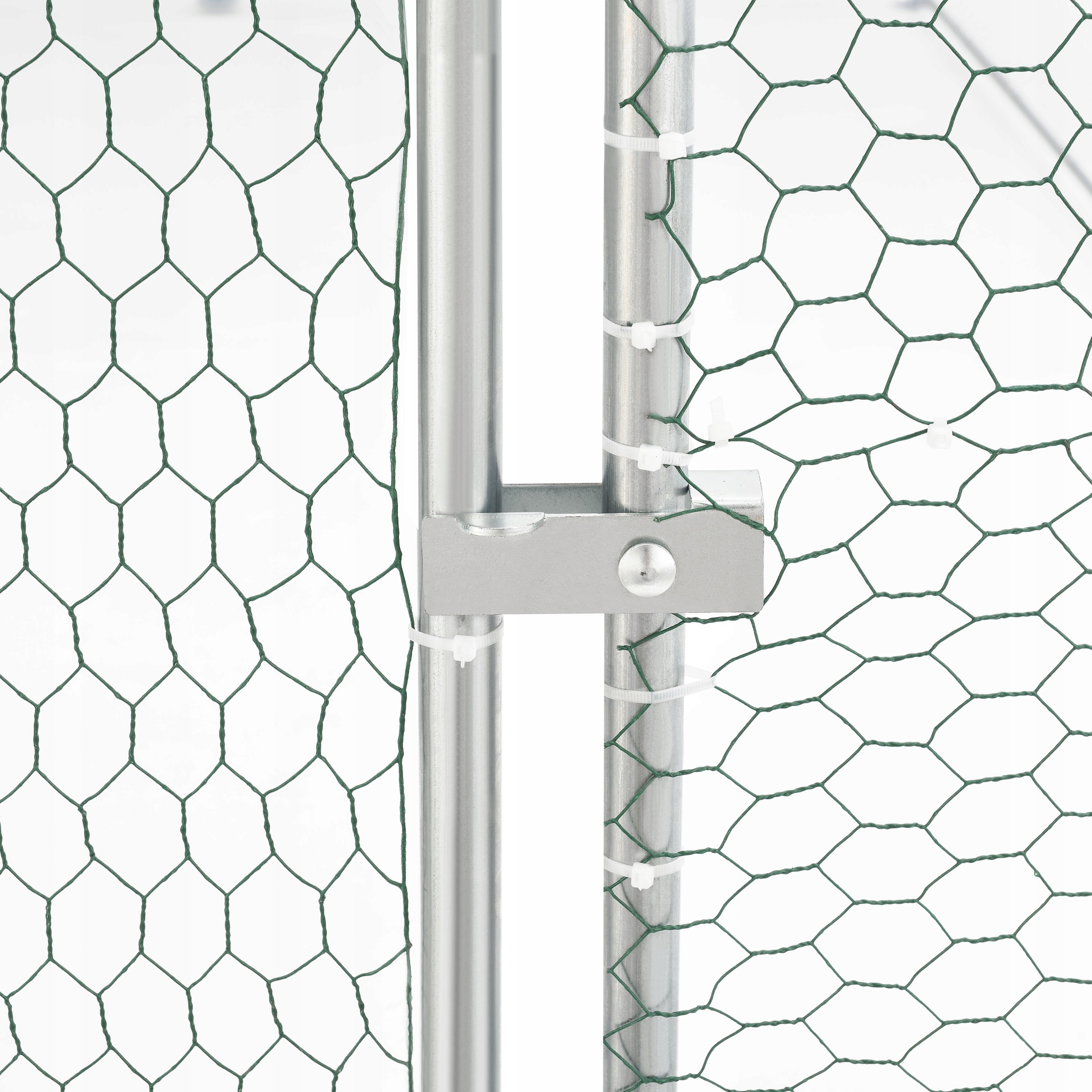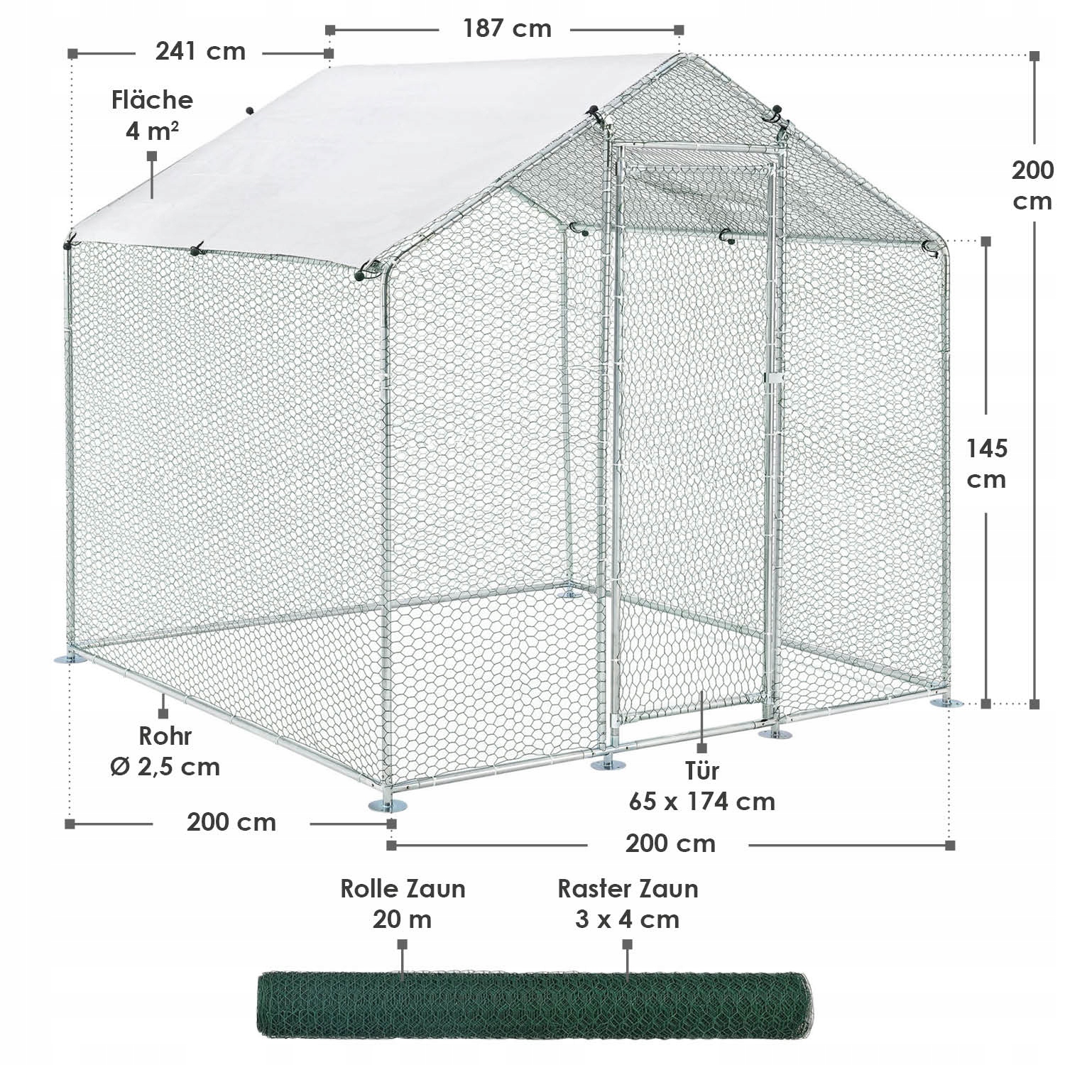 Вольер для свободного выгула HLS25T размером 2x2x2 м идеально подходит для содержания животных на открытом воздухе в соответствии с их видом. В оцинкованном манеже для мелких животных достаточно места для кур, кроликов и гусей. Растения здесь также защищены и сухие. Водонепроницаемый брезент можно гибко прикрепить к раме. Благодаря оцинкованным трубам и ограждению с ПВХ-покрытием вы получаете устойчивый и прочный курятник, который легко собрать с помощью защелкивающейся системы.