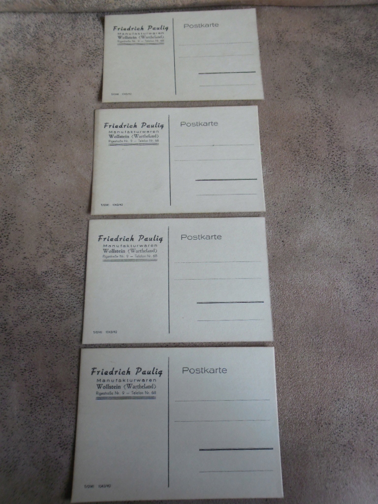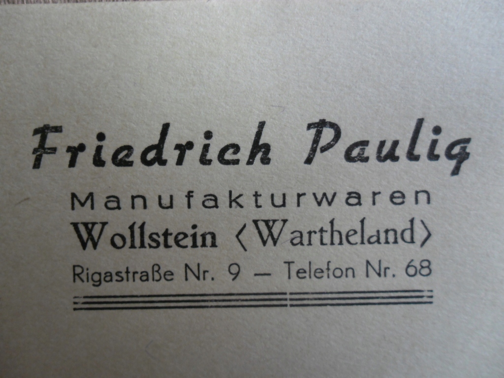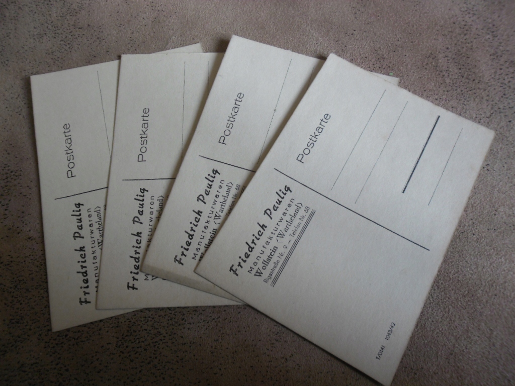 Предметом аукциона является СТАРАЯ ОТКРЫТКА ИЗ ВОЛЬШТЫНА ПЕРИОДА ВТОРОЙ МИРОВОЙ ВОЙНЫ. ОТКРЫТКА НЕ СОХРАНЕНА. В ЛЕВОМ ВЕРХНЕМ УГЛУ НАХОДИТСЯ ОТПЕЧАТЛЕНИЕ ФРИДРИХА ПАУЛИГА. MANUFAKTURWAREN WOLLSTEIN (WARTHELAND) RIGASTRA SE NO .9-ТЕЛЕФОН NR.68.БУМАГА МУСОРНАЯ И В ПРОТИВНОМ ОБЯЗАТЕЛЬСТВЕ, Я ОЦЕНИВАЮ ЕГО КАК ОЧЕНЬ ХОРОШИЙ.ЦЕНА УКАЗАНА ЗА ОДНУ ШТУКУ.РАЗМЕР 15/10,5 СМ.