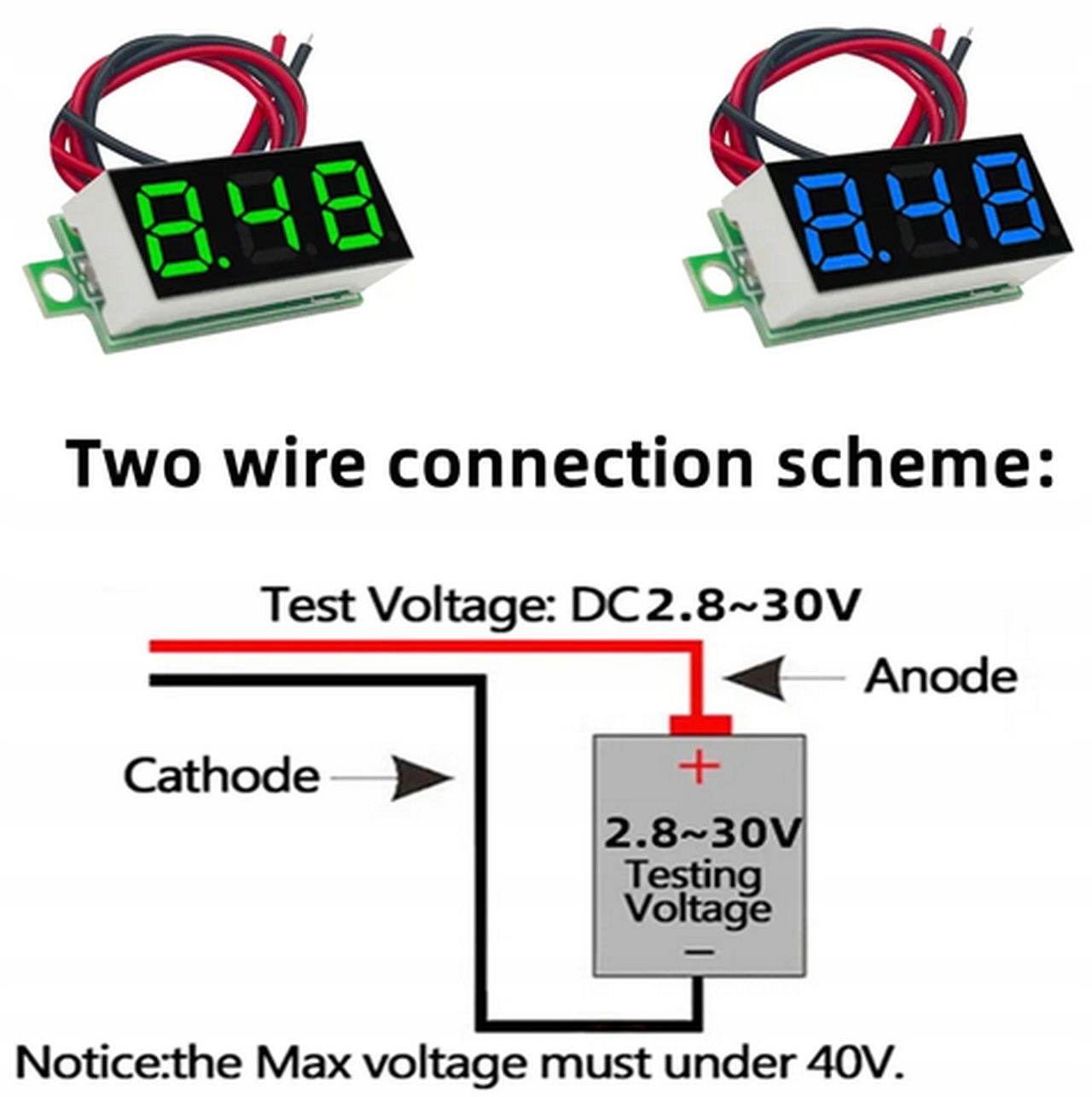 wolttomierz 0-100v DC, три кабели (источник питания +измерение), синий