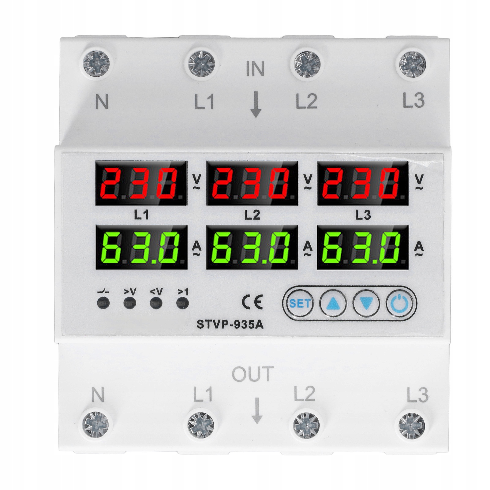 ВОЛЬТМЕТР АМПЕРМЕТР ЗАЩИТА ОТ ПЕРЕНАПРЯЖЕНИЯ 3-ФАЗНЫЙ 63А