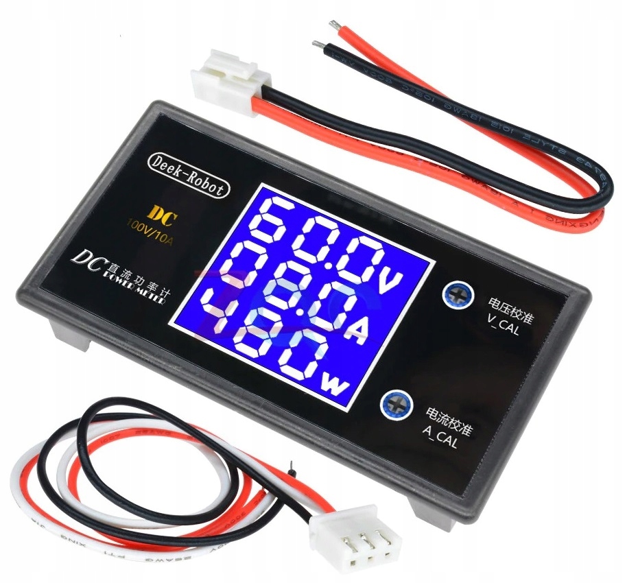 Универсальный модуль вольтметра, амперметра и ваттметра напряжения и постоянного тока. Счетчик питается напряжением в диапазоне 7-12В постоянного тока, при этом диапазон измерения напряжения составляет 0-100В постоянного тока.
