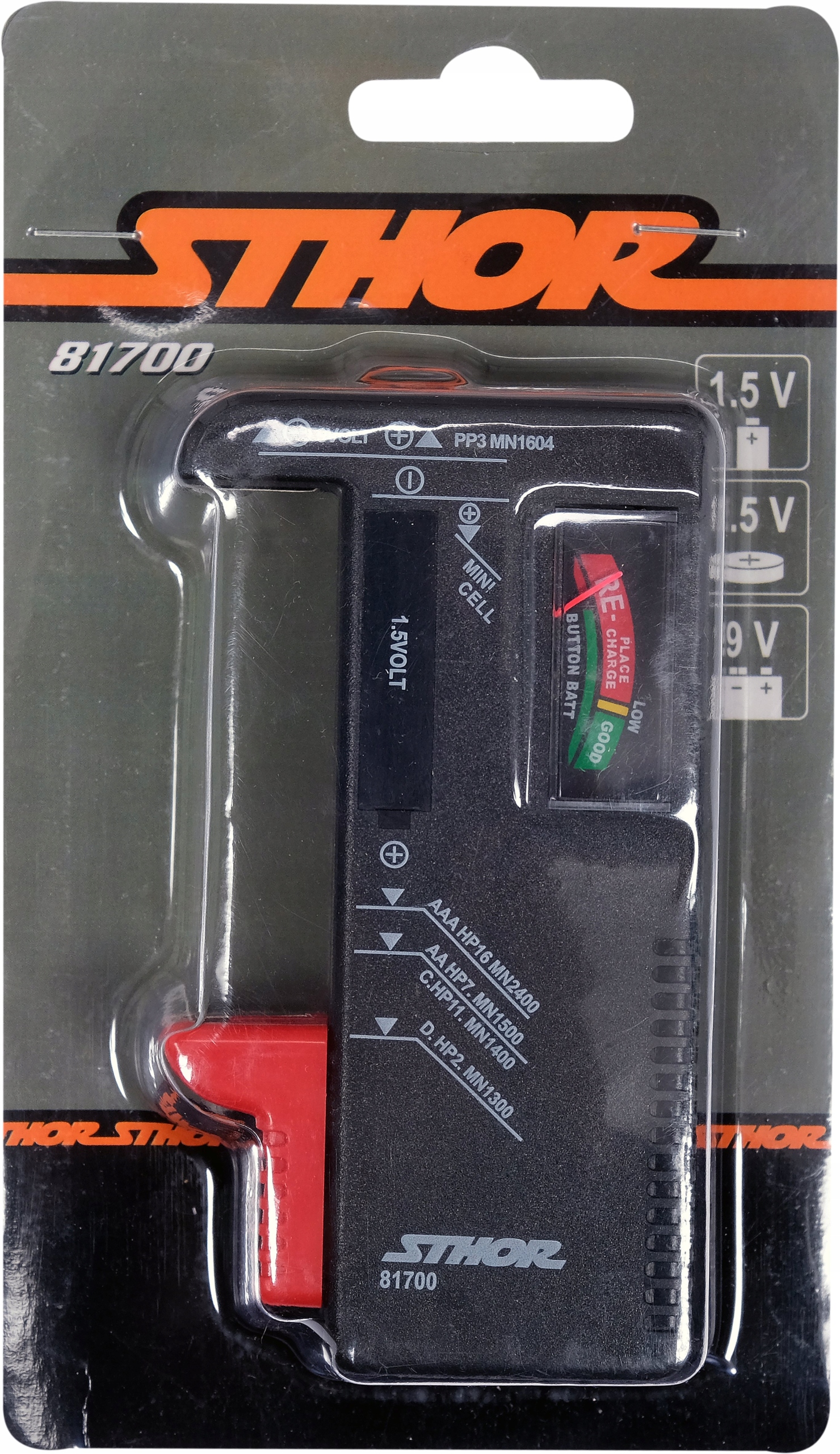 - Применение: для проверки всех типов батарей 1,5 В и 9 В.