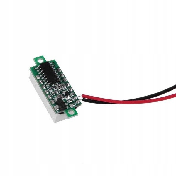 Универсальный цифровой модуль вольтметра с диапазоном вверх до 30В. Удобный способ сделать свой счетчик в своем устройстве. Благодаря двум проводам измеритель потребляет ток от проводов, на которых выполняет измерение. Поэтому он очень прост в использовании, а его небольшие размеры позволяют использовать его даже в очень небольших проектах или продуктах. Поскольку счетчик потребляет энергию из системы, он ее слегка нагружает.