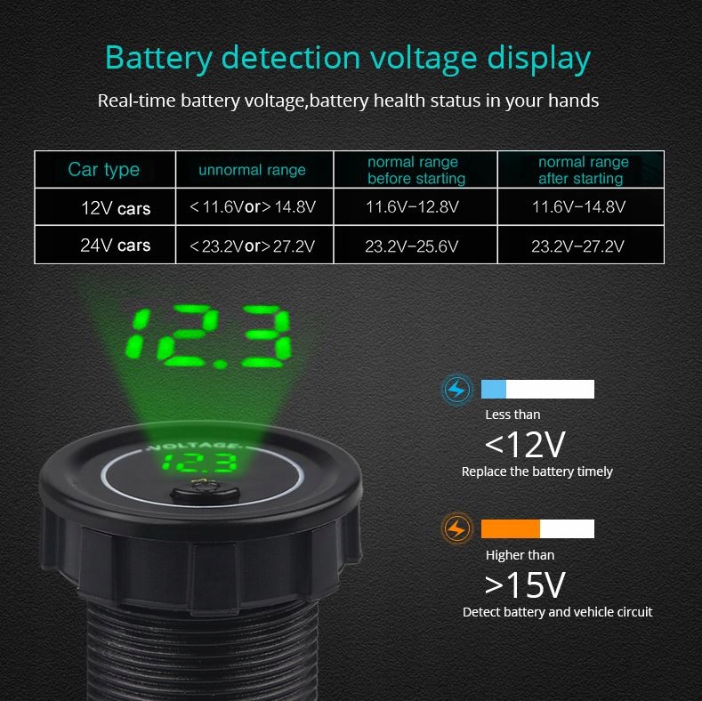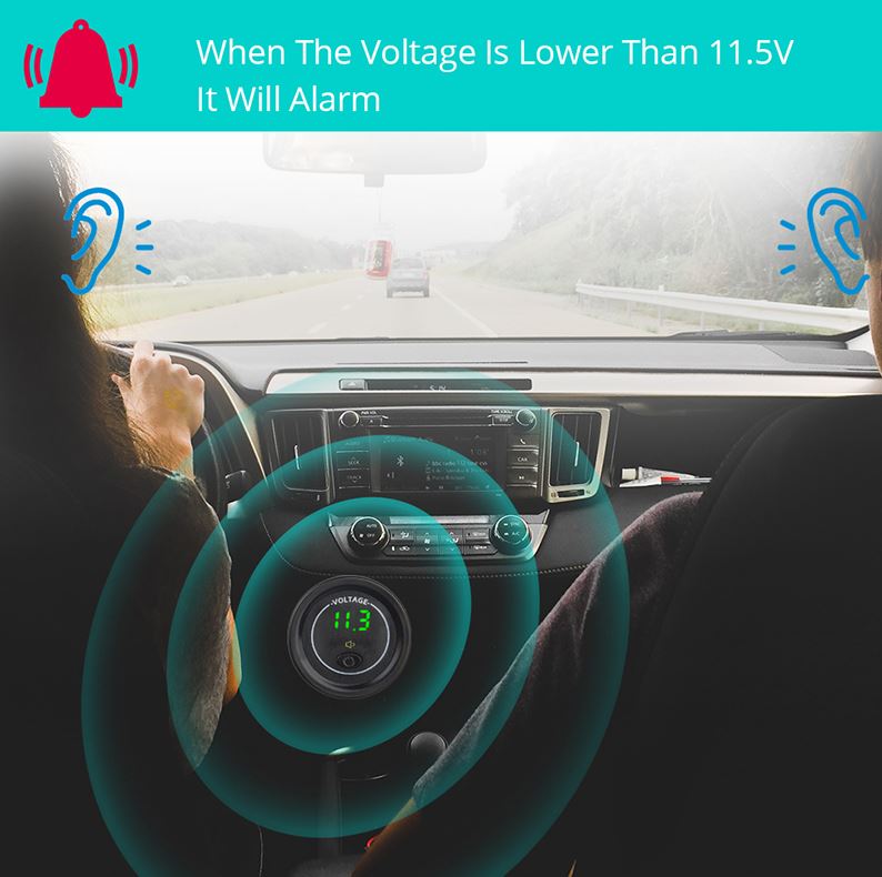 Когда напряжение ниже 11,5 В, вольтметр включает сигнал тревоги.