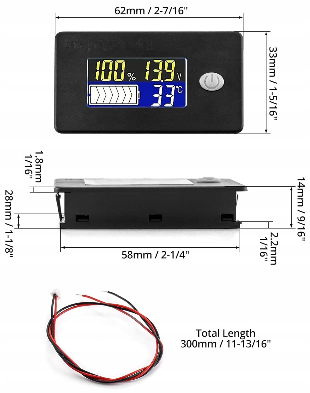 ✅ Применение: может использоваться в качестве вольтметра батареи, тестера емкости батареи и панели отображения температуры. в автомобилях, кораблях, автофургонах и т. д.