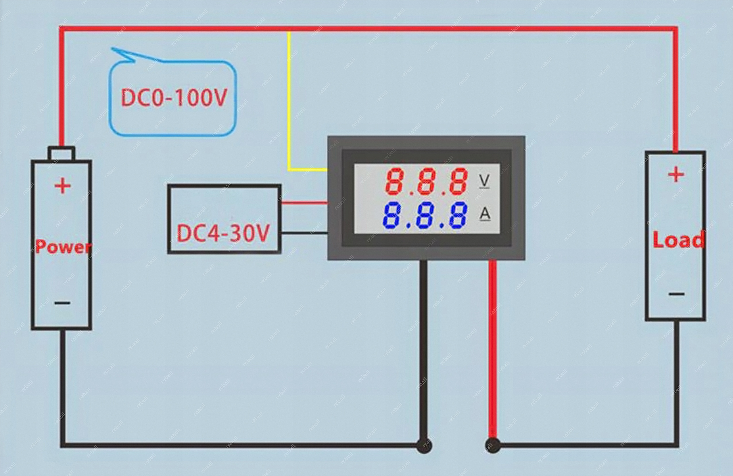 - Диапазон напряжение измерения: 0–99,9 В постоянного тока,
