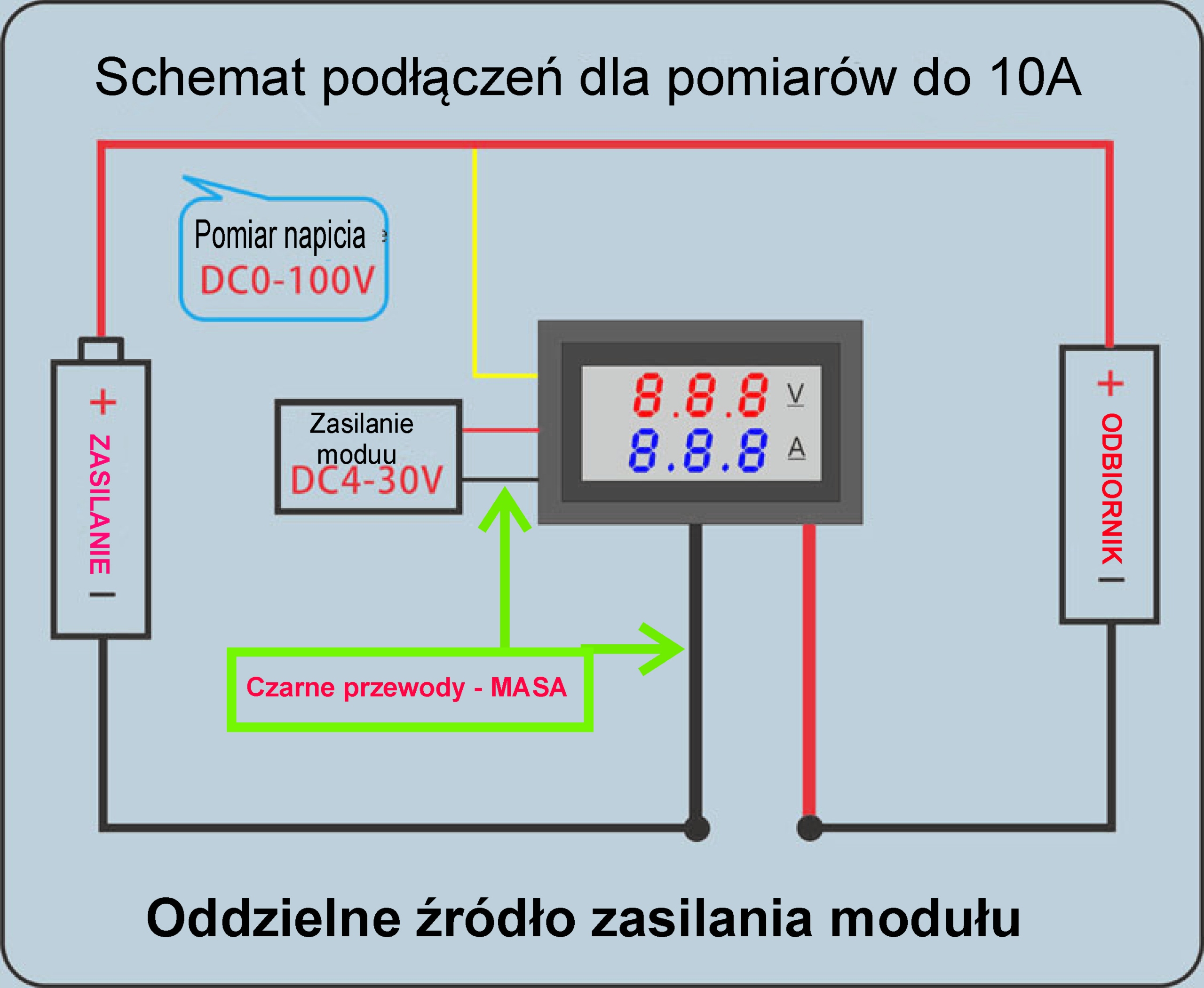 Поскольку счетчик может питаться от любого постоянного напряжения в диапазоне от 4 до 30 В. Вольт может успешно использоваться для измерений в автомобильных установках, как 12В, так и 24В.