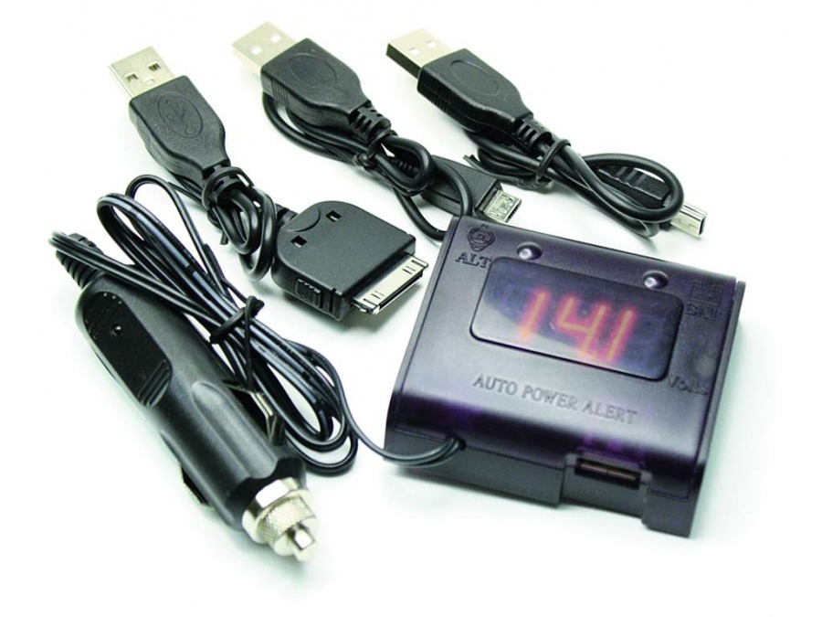 Прибор для измерения напряжения в установке 12 Вольт. При подключении через гнездо прикуривателя автомобиля отображает текущее напряжение зарядки (при работающем двигателе) или напряжение режима ожидания (при остановленном автомобиле). Также на нем есть 2 диода, информирующих о неправильных значениях напряжения зарядки и аккумулятора. Его можно приклеить на любую поверхность с помощью губки, помещенной на заднюю часть корпуса. Устройство также имеет выход USB, благодаря которому мы можем дополнительно заряжать, в том числе, во время вождения. фотоаппарат, телефон, планшет, ноутбук, электронная сигарета. В комплект входит набор насадок для большинства электронных устройств. Выходные параметры USB-порта: 5 В, 400 мА.