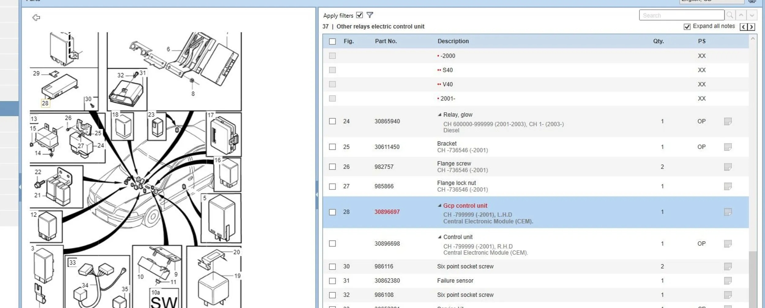 Volvo S40, V40 2002 Комфортные модули
