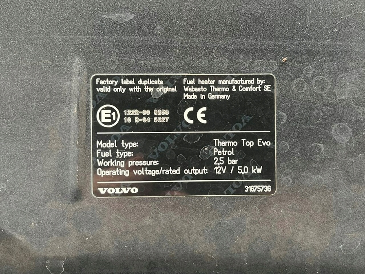 - транспортное средство, обслуживаемое до конца в Volvo aso