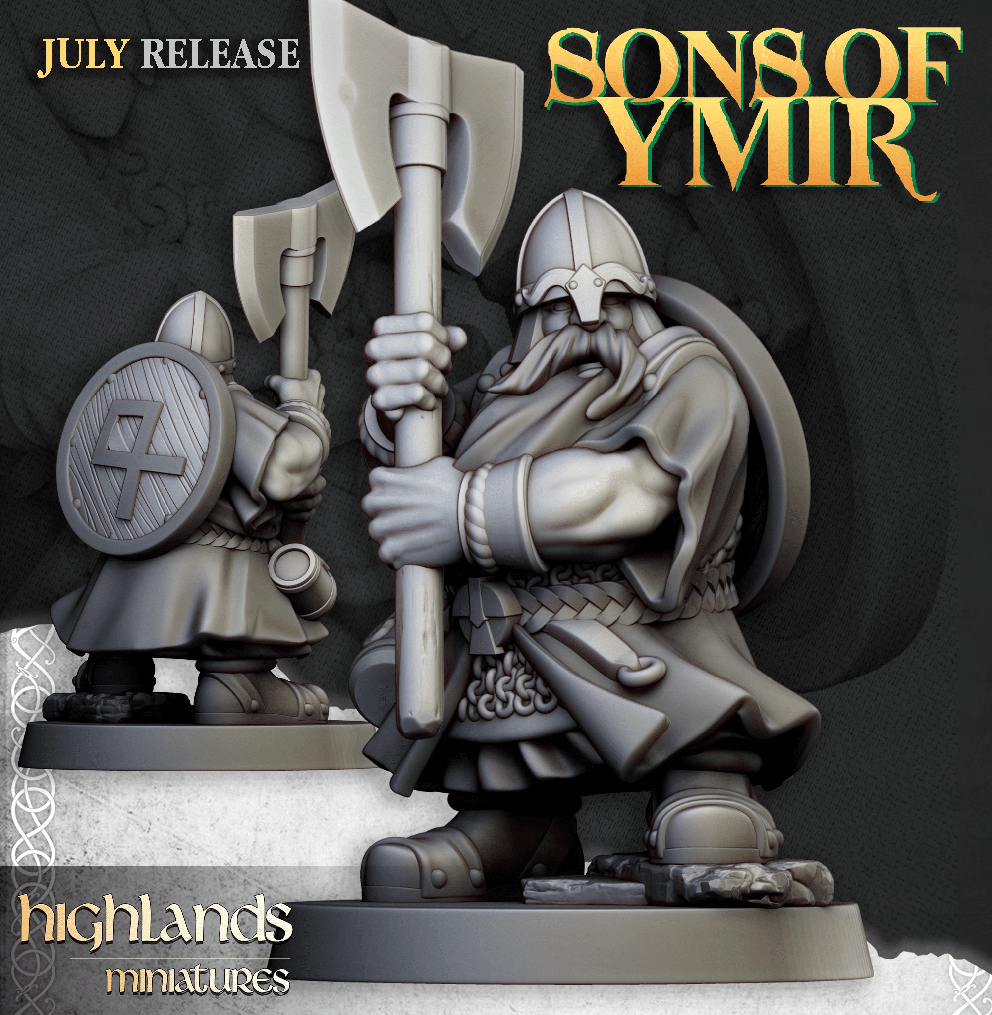 Воин-гном с двуручным топором 5 — фигурки службы 3D-печати для ролевых игр или боевых игр