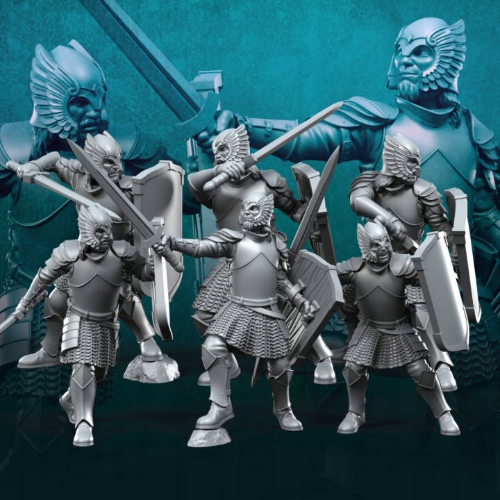 Воины серого замка с мечами — x6 — фигурки службы 3D-печати для ролевых игр или боевых игр