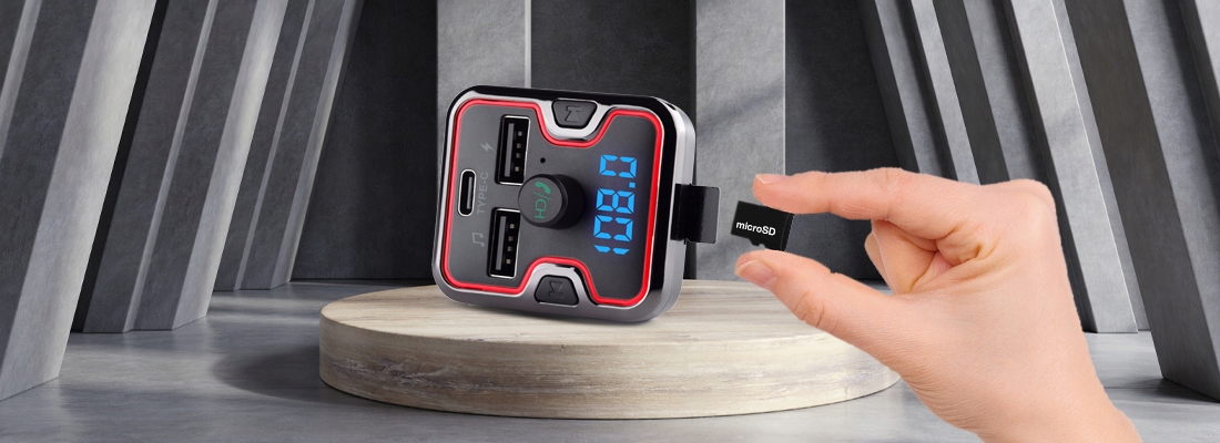 Передатчик оснащен классическим слотом microSD. чтобы всегда иметь с собой любимые песни, предназначенные для самых длинных маршрутов. Устройство запоминает источник последней воспроизведенной песни, чтобы продолжить воспроизведение после перезапуска.