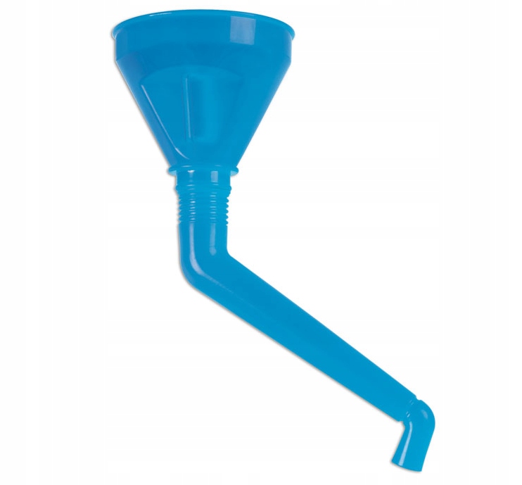 Изогнутая воронка предназначена для доступа к труднодоступным местам, например маслозаправочные горловины для двигателей мотоциклов, бачки для тормозной жидкости легковых автомобилей и автофургонов; особенно полезно, когда он расположен в задней части моторного отсека. Изогнутый излив имеет радиус действия 240 мм, его можно отвинтить и получить прямую воронку (диаметр 145 мм, глубина 135 мм). Воронка имеет боковую ручку для удобства использования и сетчатый фильтр для предотвращения попадания мусора в резервуар. Изготовлен из масло- и топливостойкого полипропилена, что делает его идеальным для использования в автомобильной промышленности.