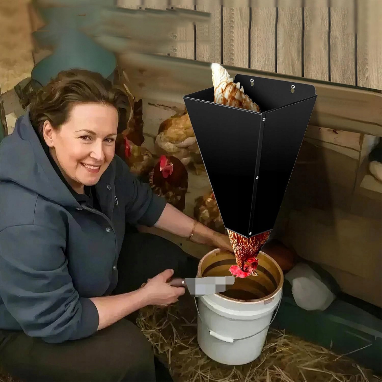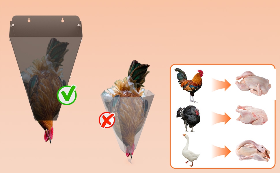 🐓🐓Высокоэффективный конус-воронка - Конус имеет тщательно продуманную воронкообразную форму и загнутые края с увеличенным отверстием внизу, что обеспечивает легкий ввод птиц и в то же время эффективную защиту. Отверстие внизу позволяет выйти только голове и шее, что предотвращает взмахи и брызги крови, что делает процесс чище и гуманнее.